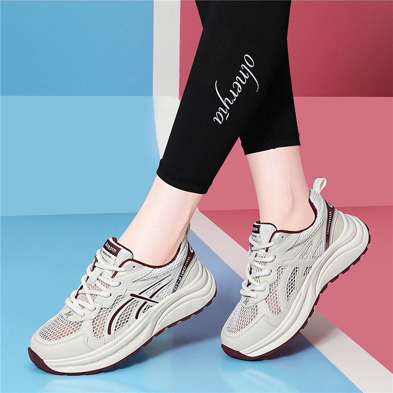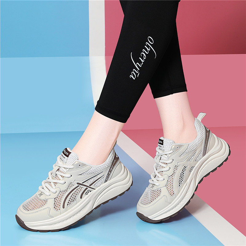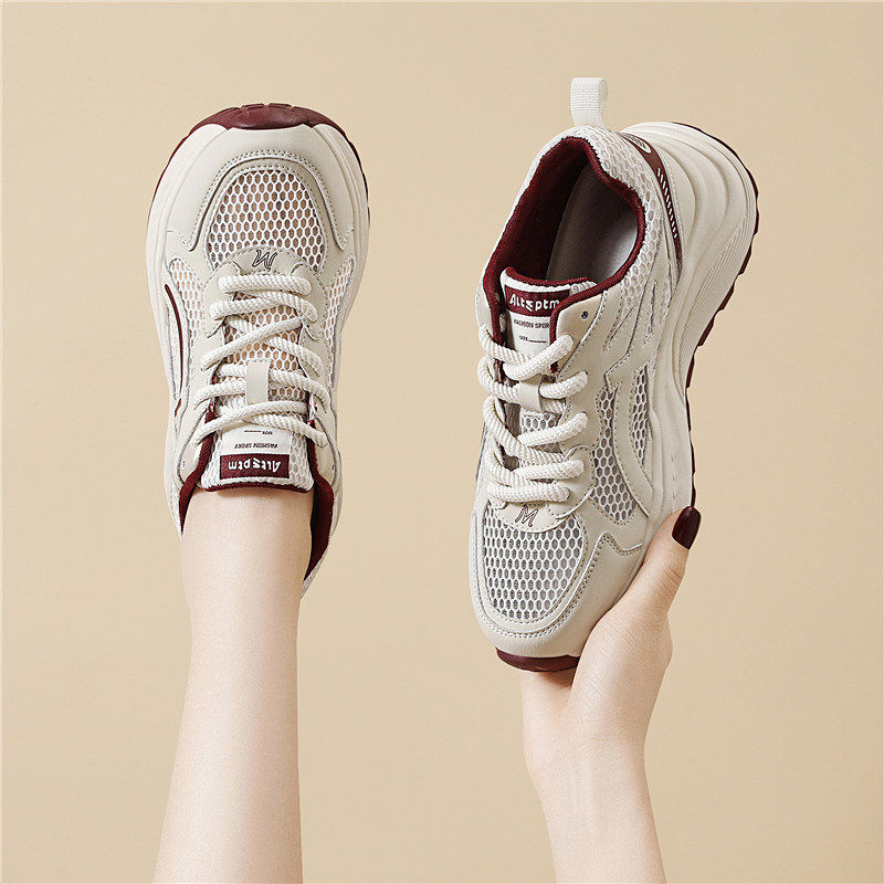 老爹鞋女鞋秋季薄2025新款爆小白网面透气不闷脚百搭厚底运动凉鞋