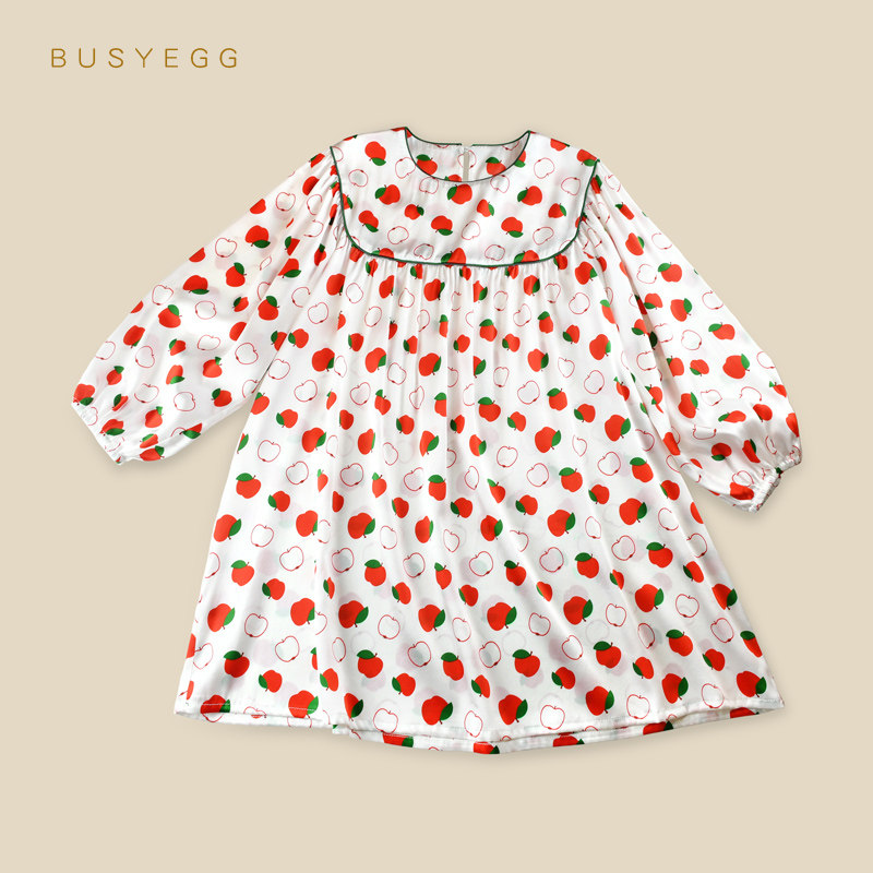 311线报网描述:清新小苹果真丝睡裙 长袖设计 适合空调房