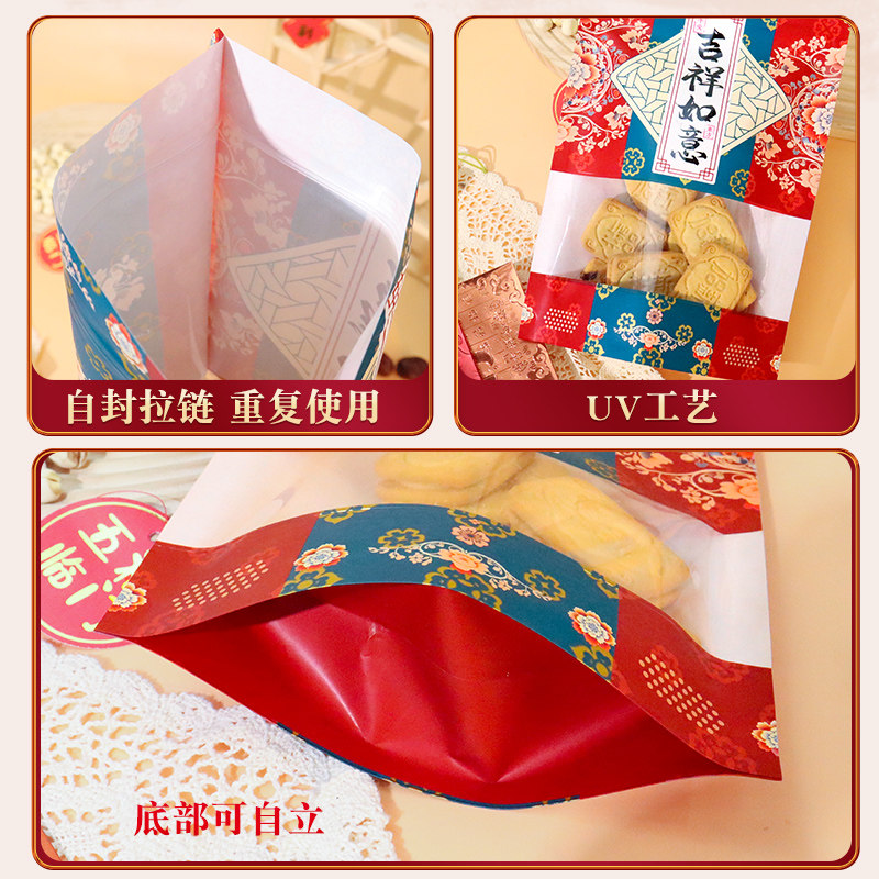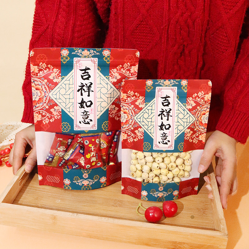 年货食品自封袋吉祥如意密封礼品袋干货零食牛皮纸袋糖果干果袋子
