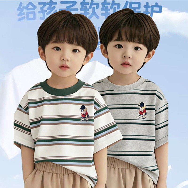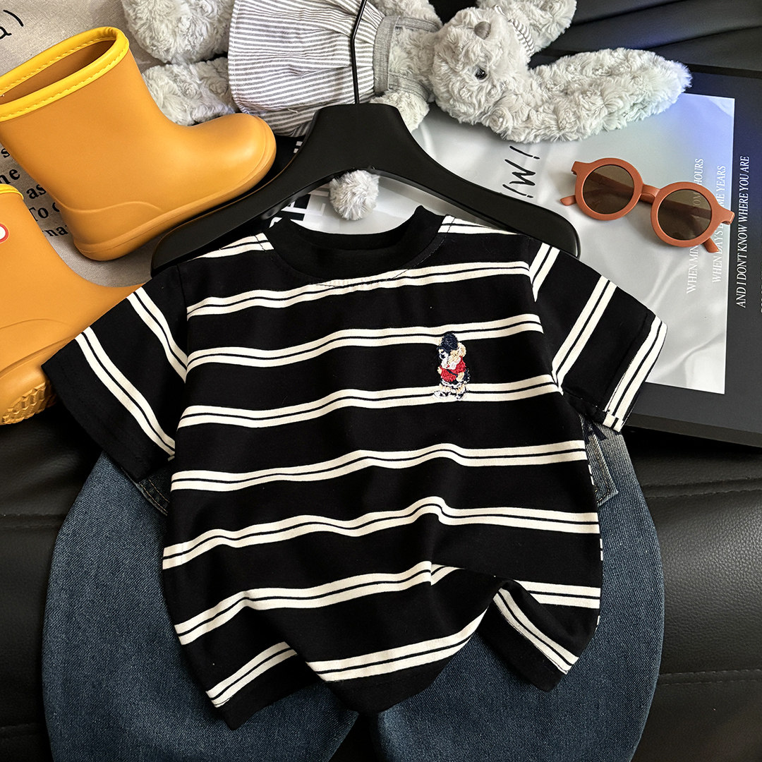 儿童纯棉刺绣短袖T恤夏季潮帅气宽松白色女宝宝男童男孩夏装上衣