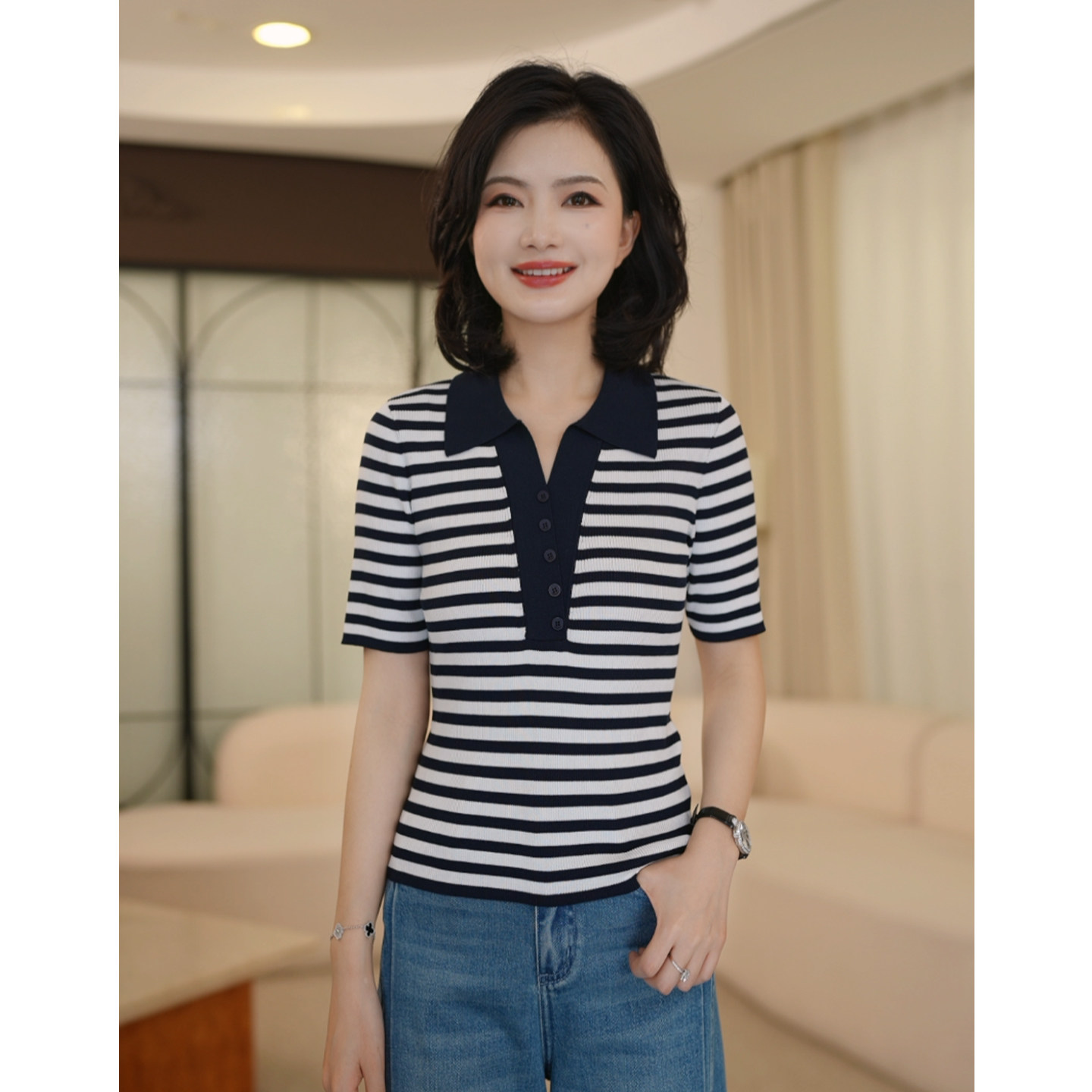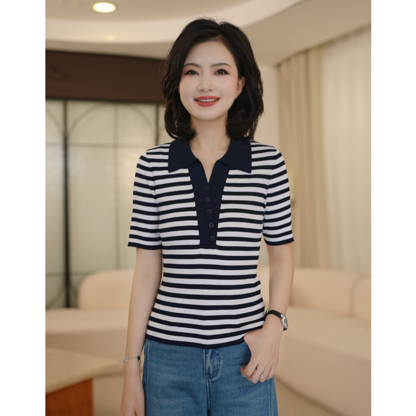 311线报网描述:撞色条纹 显瘦百搭