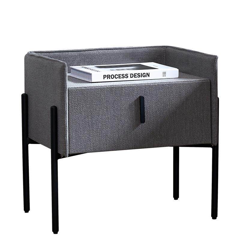 意式极简布艺床头柜轻奢碳素不锈钢床边收纳储物北欧卧室边几随床