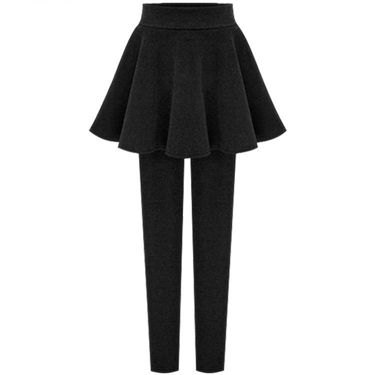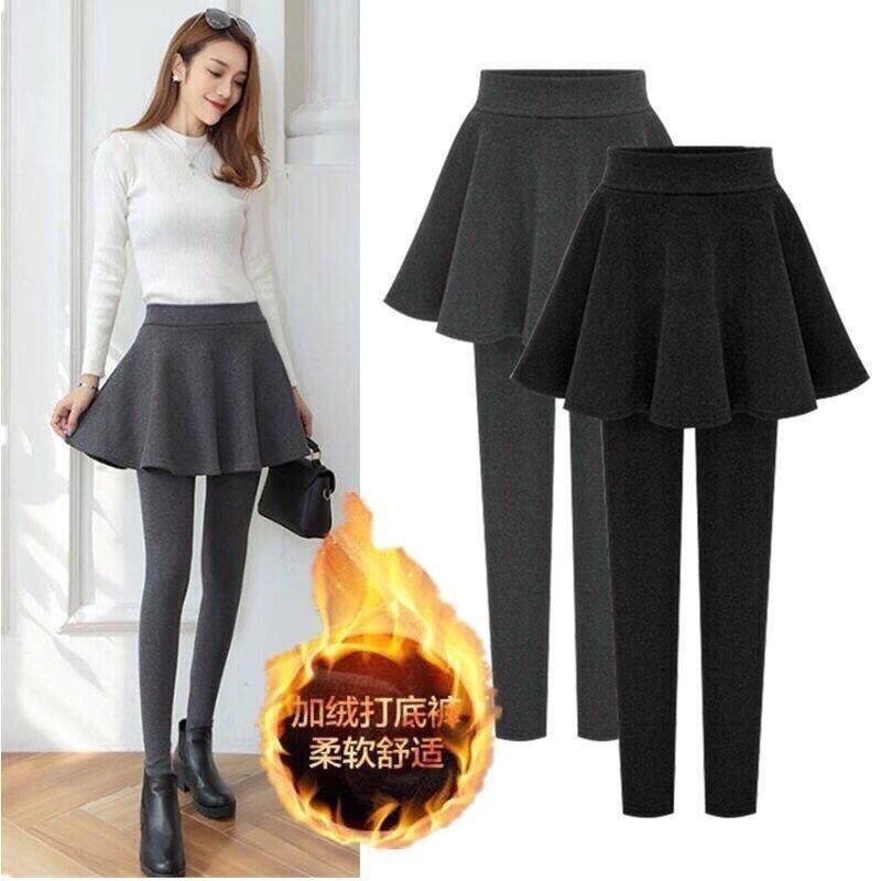 含棉加绒打底裤女外穿假两件百褶裙冬季大码加厚保暖小脚紧身裤子