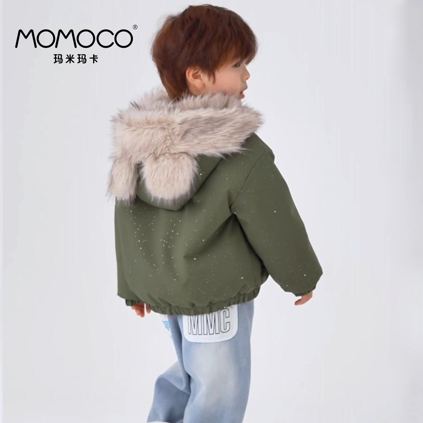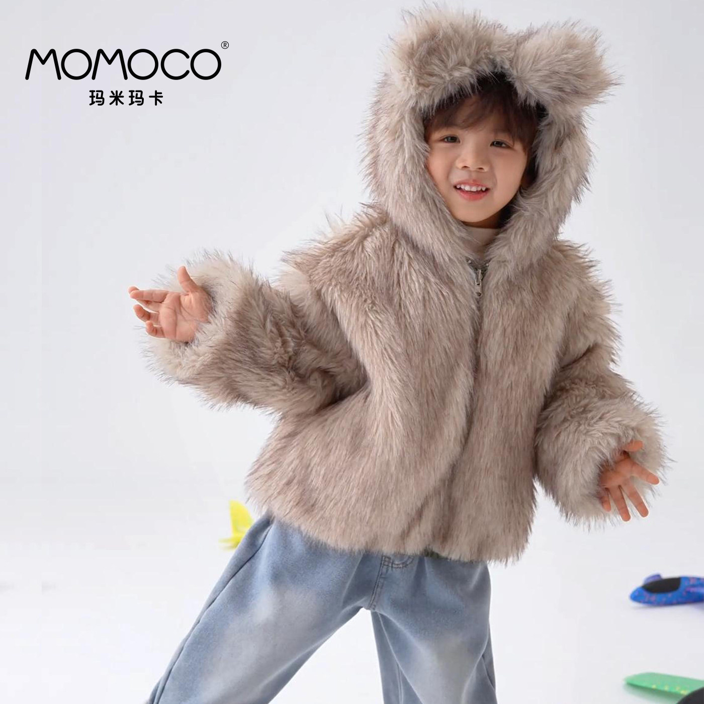 【过年服】MOMOCO玛米玛卡男童连帽外套2026冬季新款毛绒保暖可爱