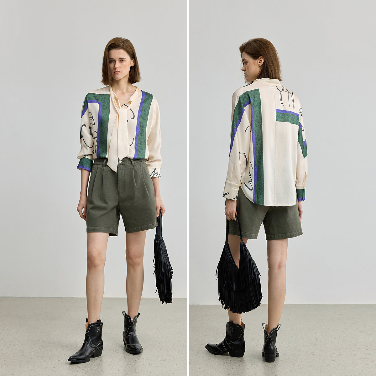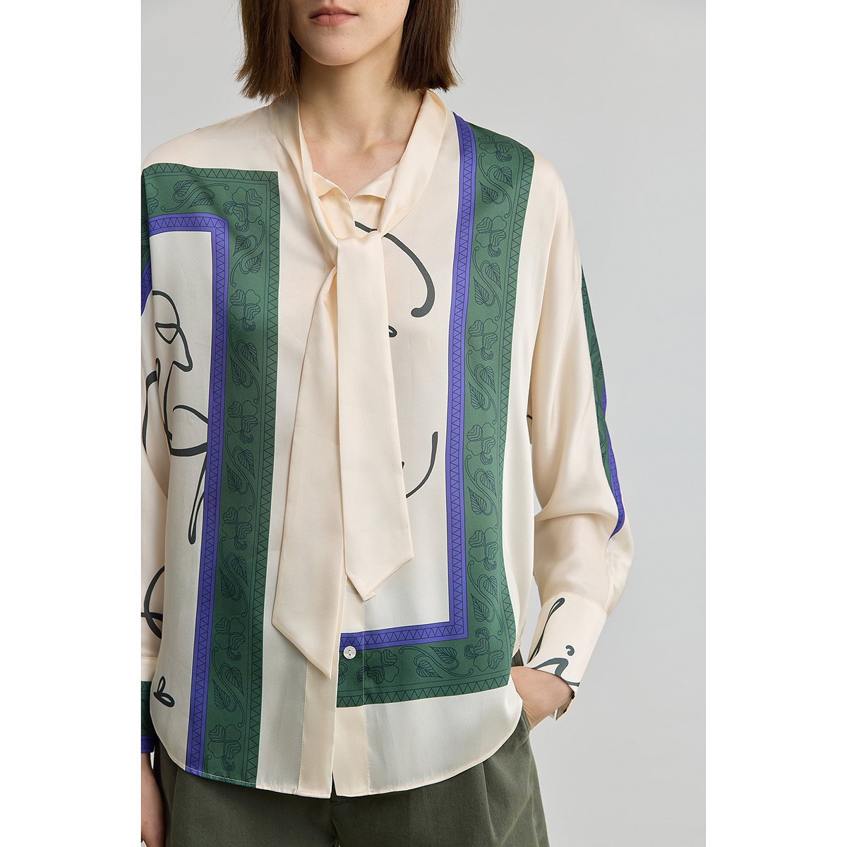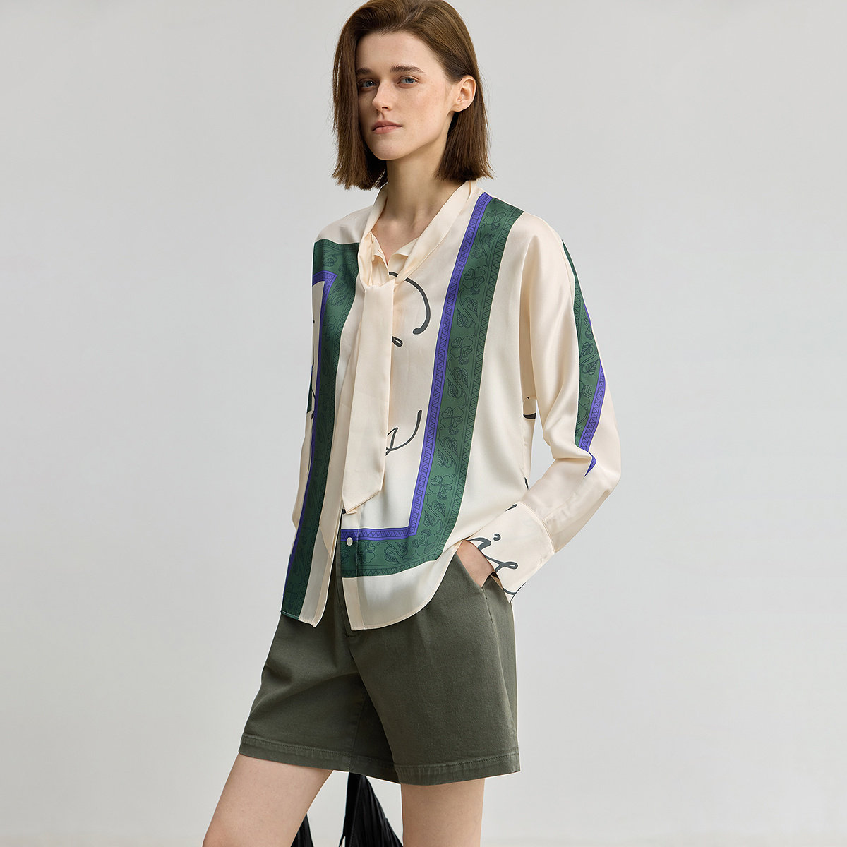 【商场同款】LILY2025新款女装复古飘带领印花休闲长袖衬衫外套
