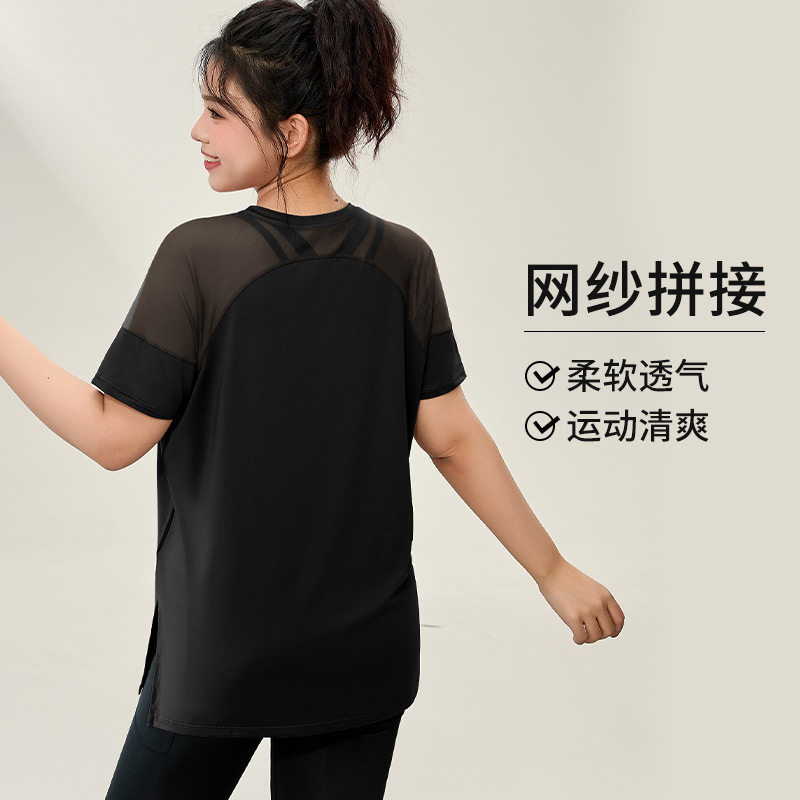 加肥加大码瑜伽服套装女胖mm宽松遮肉跑步运动t恤短袖健身衣200斤