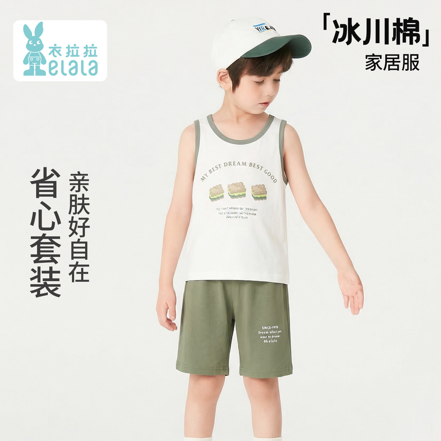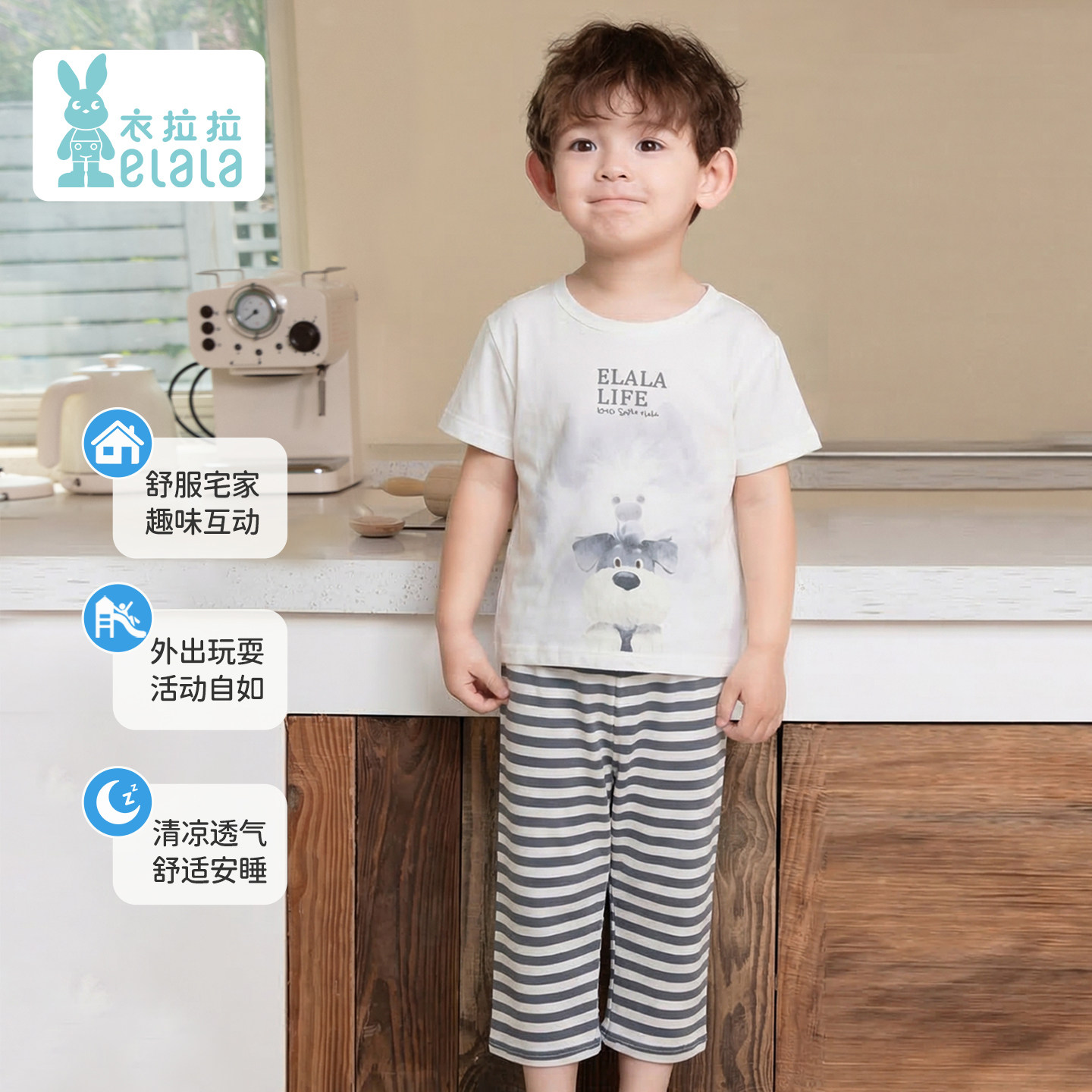 衣拉拉2026夏季1-10岁男童纯棉睡衣套装儿童短袖上衣九分裤家居服