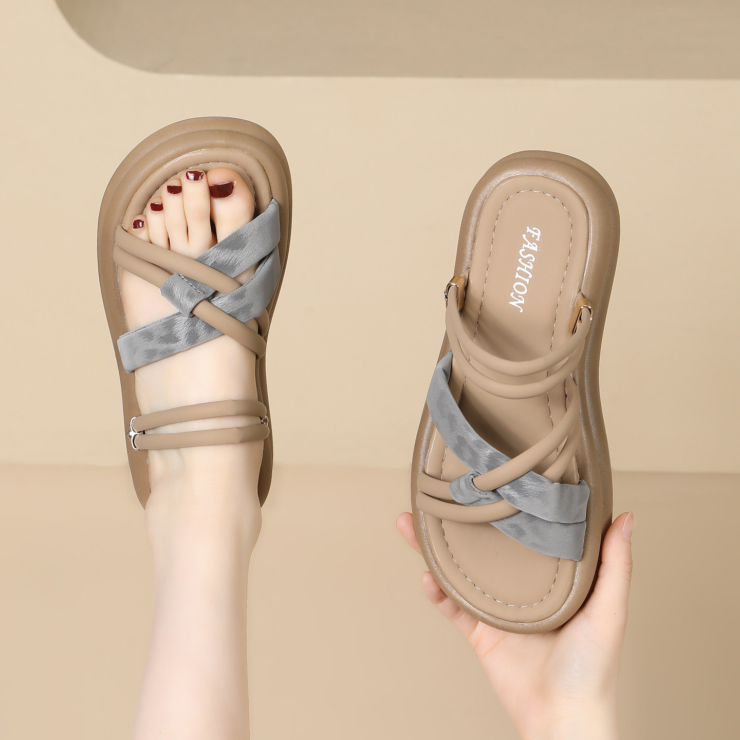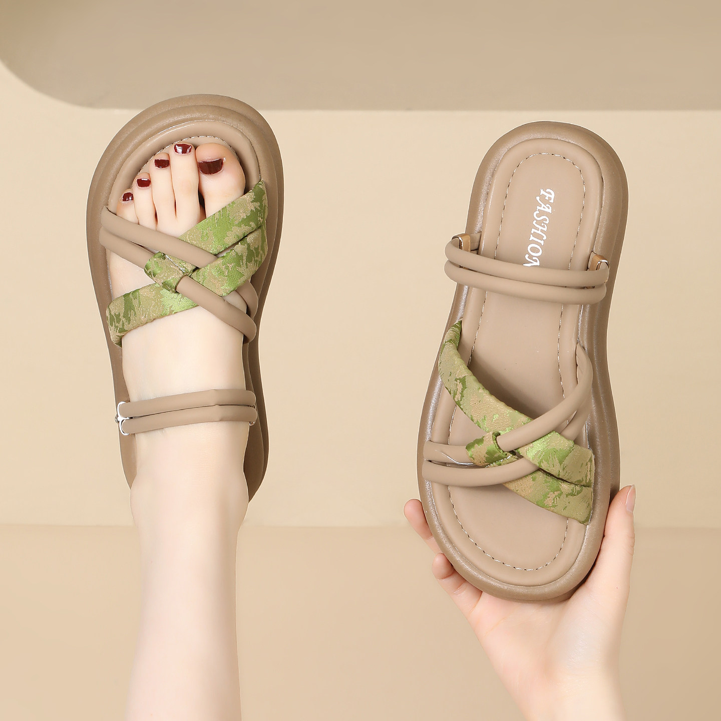 休闲风厚底一字拖女2026年夏季新款外穿编织带时尚凉拖不累脚凉鞋