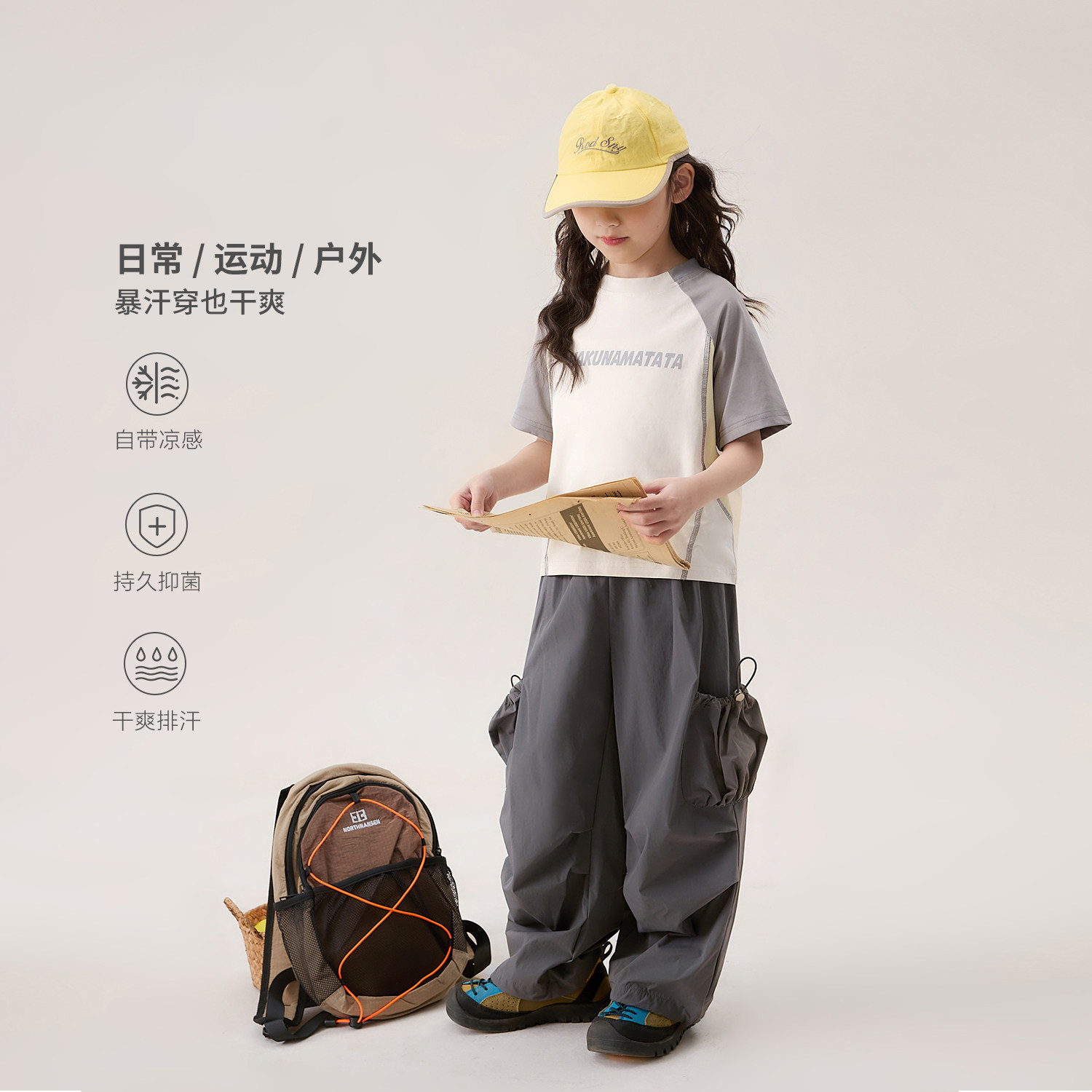 NORNOR陈大猪女童薄款短袖t恤夏季防晒凉感速干儿童休闲运动上衣