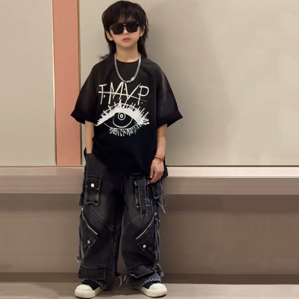 儿童夏季大童潮亲子装美式高街复古上衣男女童街舞吊染棉短袖T恤