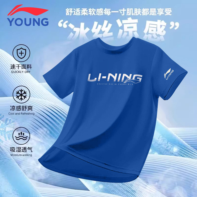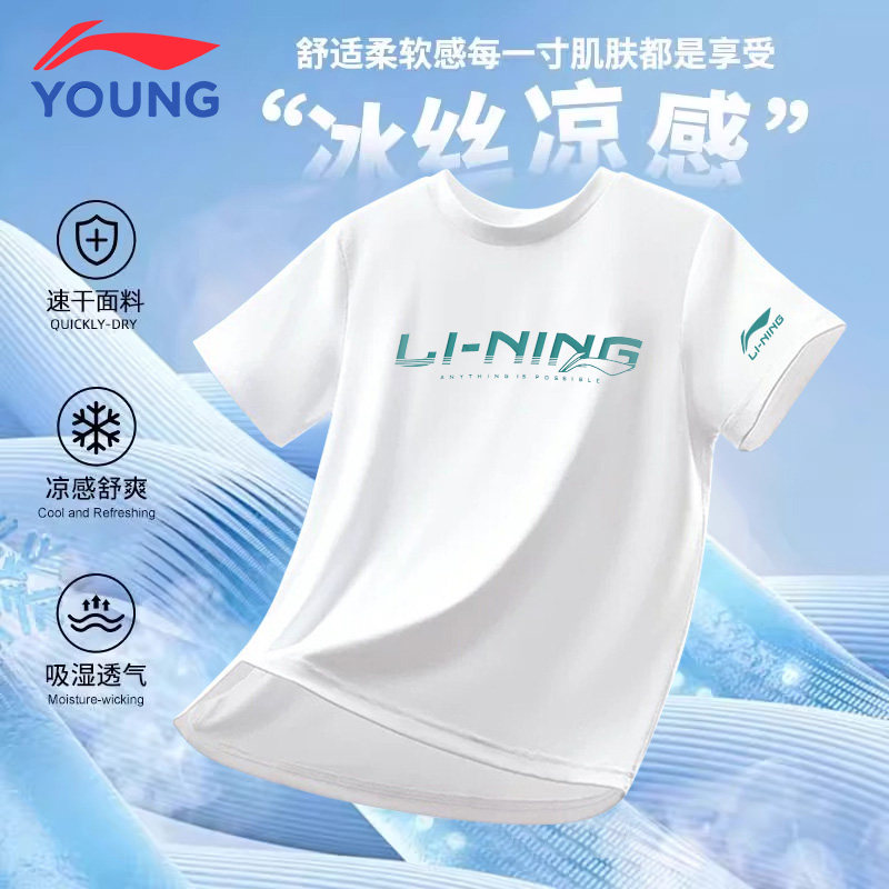 李宁童装儿童休闲t恤冰丝速干衣2026年新款男童薄款青少年短袖