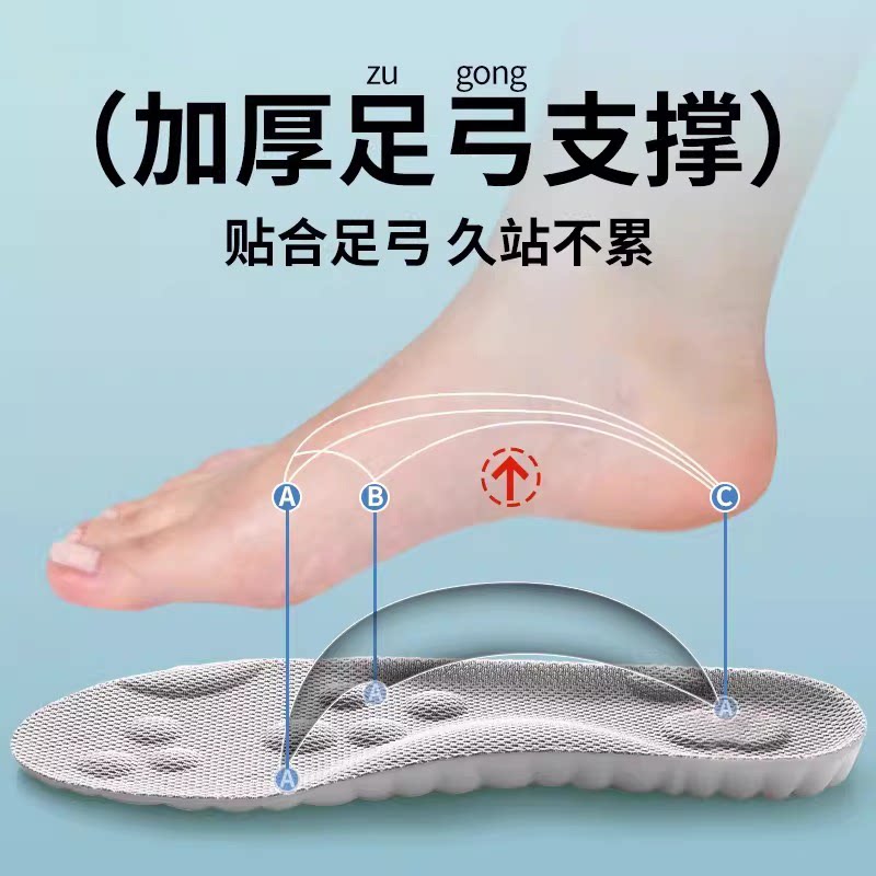 踩屎感鞋垫运动气垫减震男款久站不累艾草吸汗防臭加厚超软女除臭