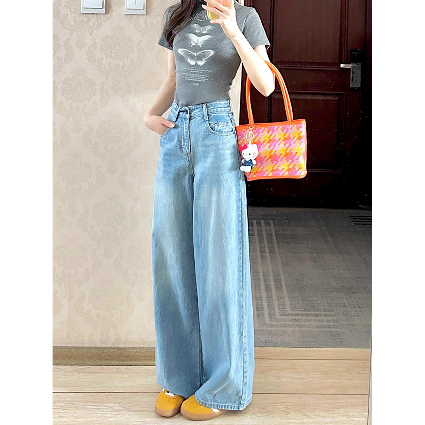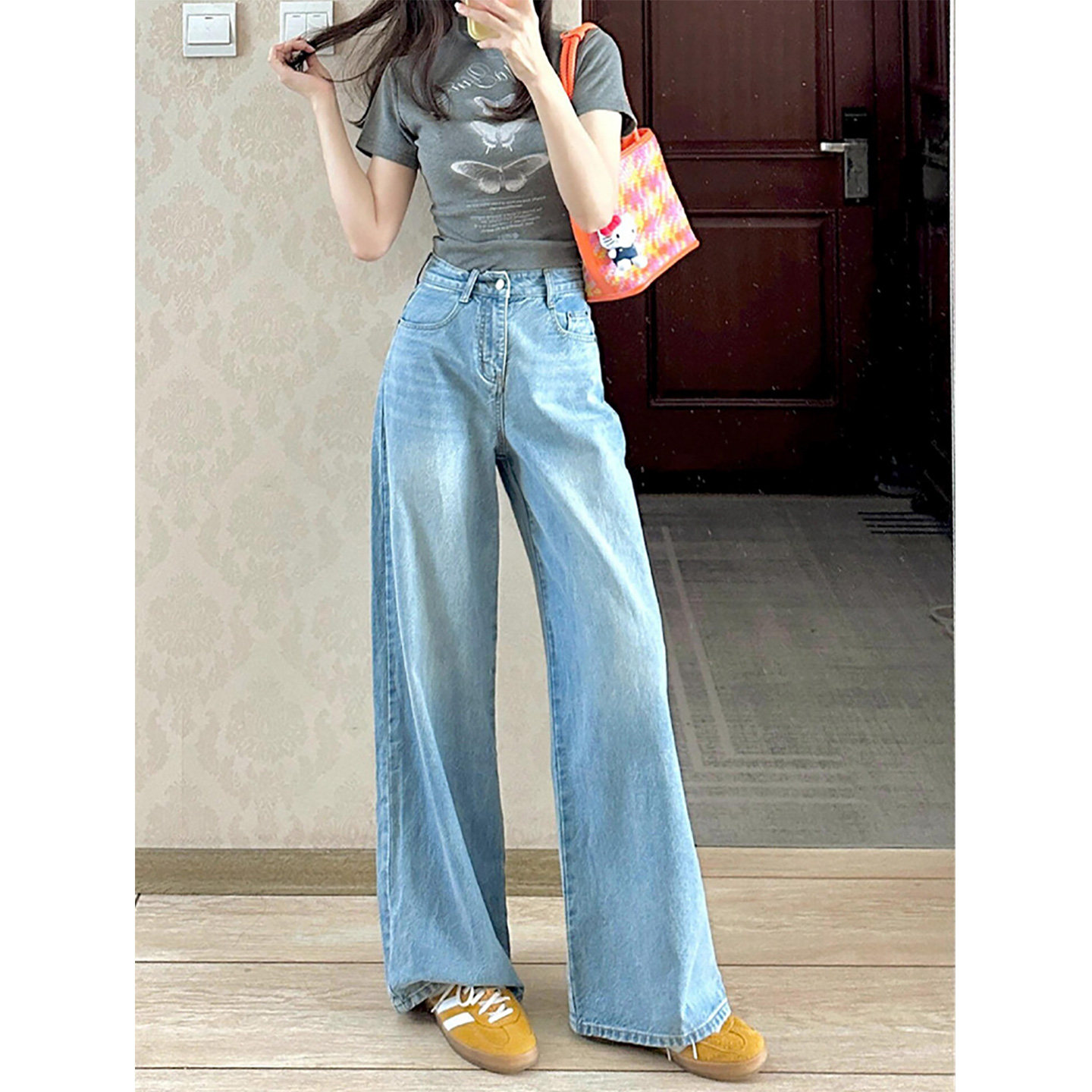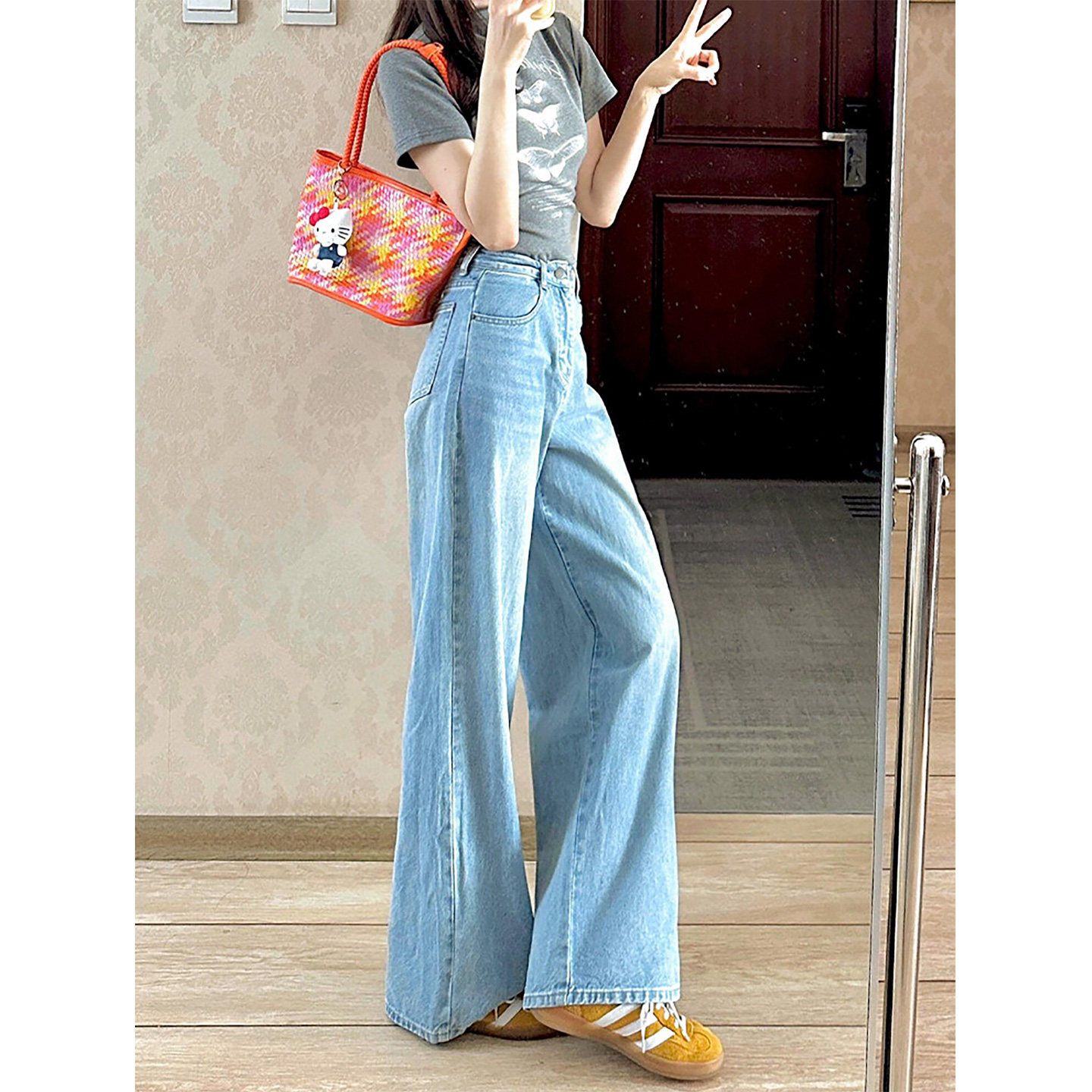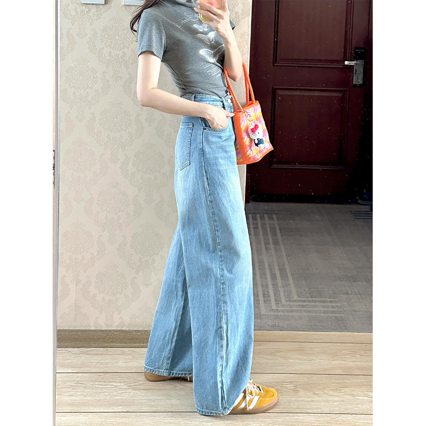 浅蓝色牛仔阔腿裤女2026春夏新款高腰宽松遮肉显瘦小个子直筒长裤
