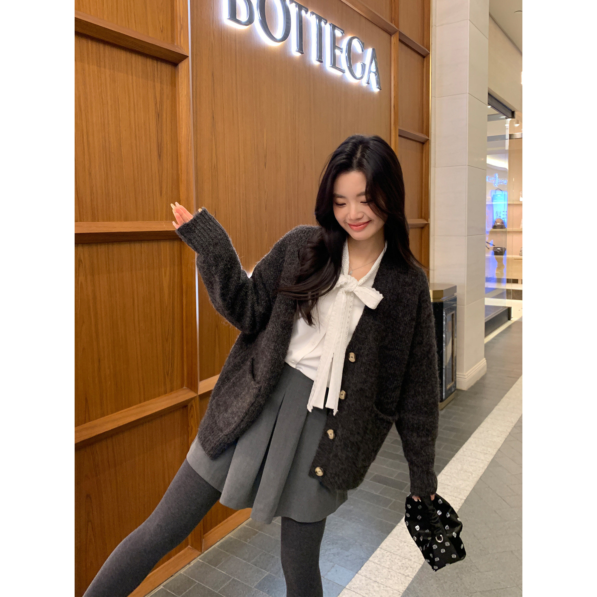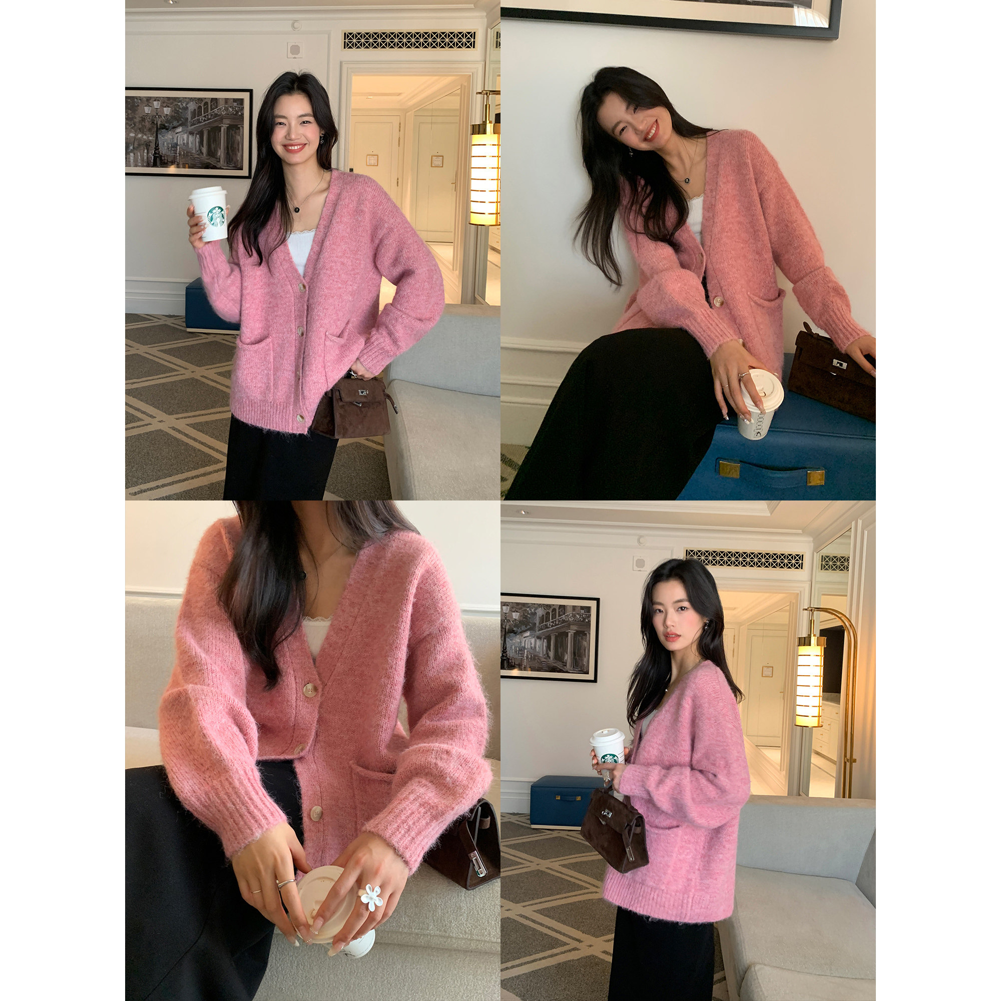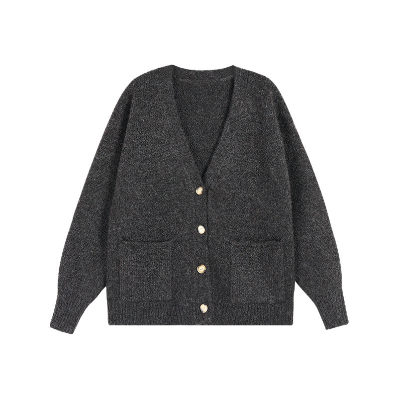 pusumede【现货6折】宽松v领毛衣外套女秋冬新款加厚针织开衫