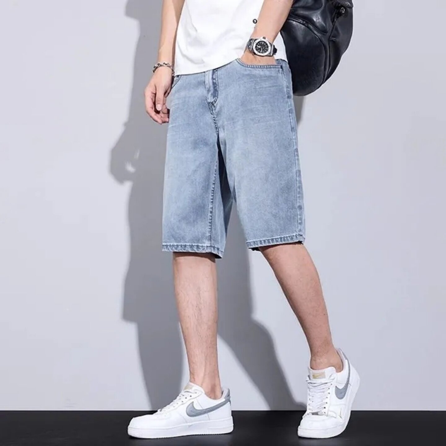 短裤男款冰丝牛仔五分裤夏季超薄凉感宽松直筒休闲弹力5分中裤男