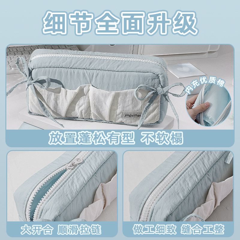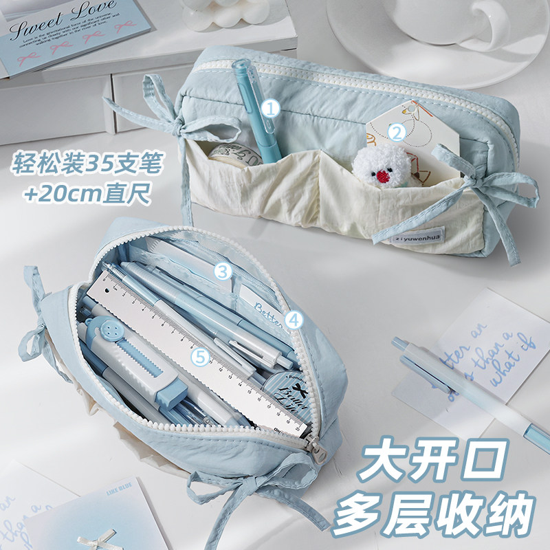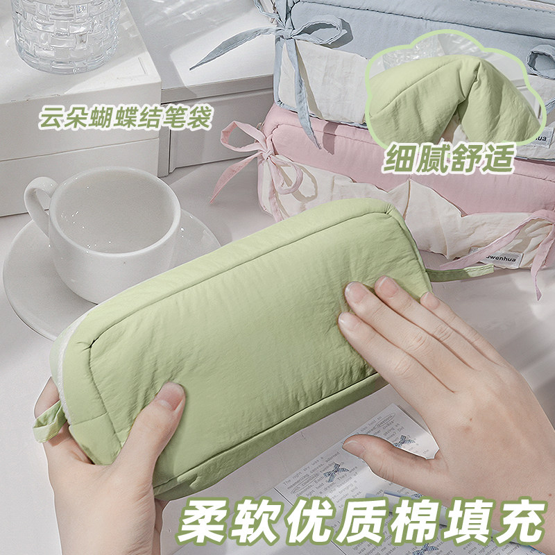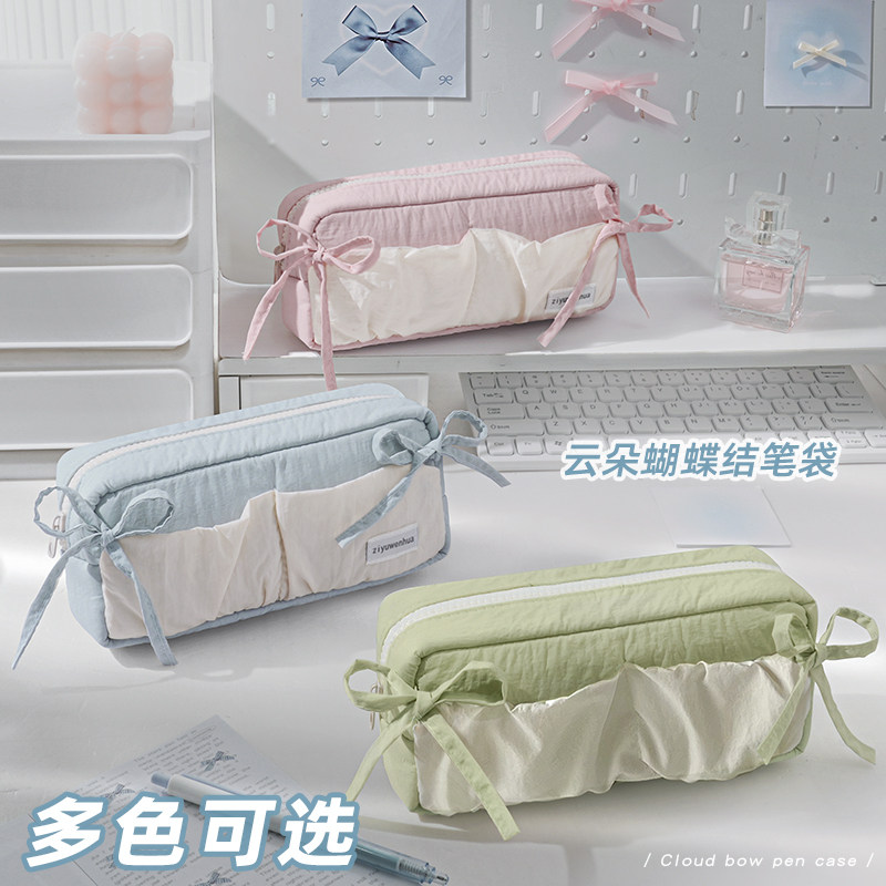 云朵吐司蝴蝶结笔袋大容量女生2026新款文具盒初中高中生女孩款铅笔盒高颜值ins风韩系简约超火大学生文具袋