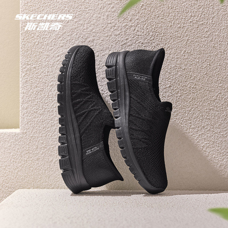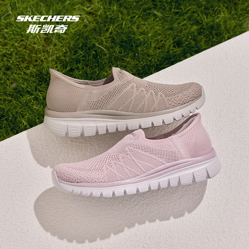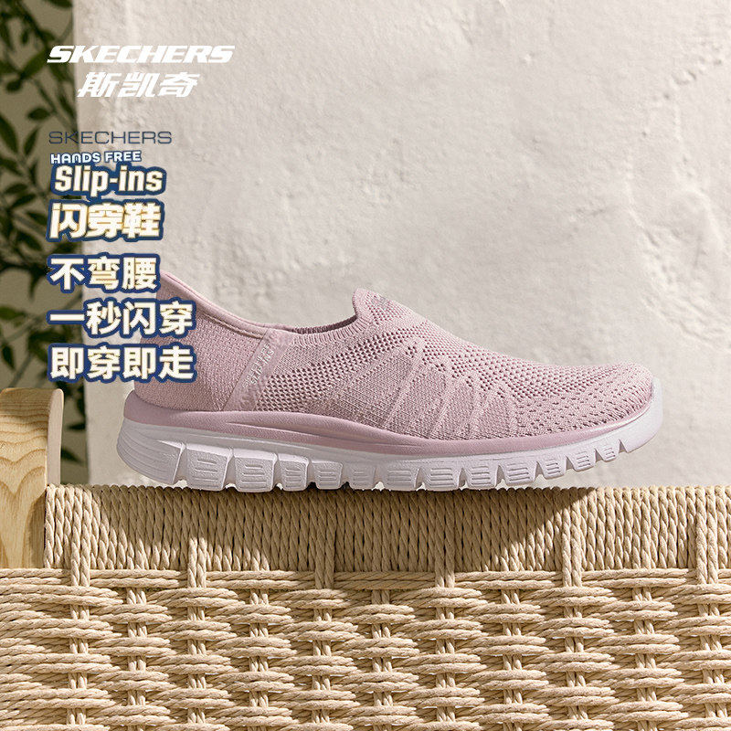 Skechers斯凯奇女鞋春夏款一脚蹬懒人健步鞋透气网面休闲鞋100737