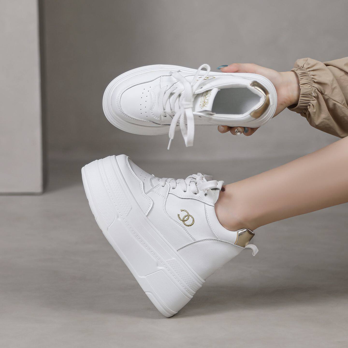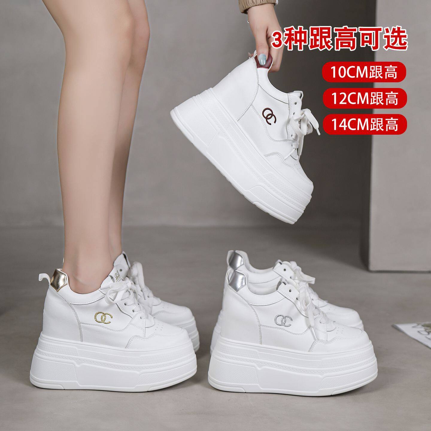 真皮12cm厚底小白鞋女超高跟10公分小个子内增高鞋14cm松糕休闲鞋