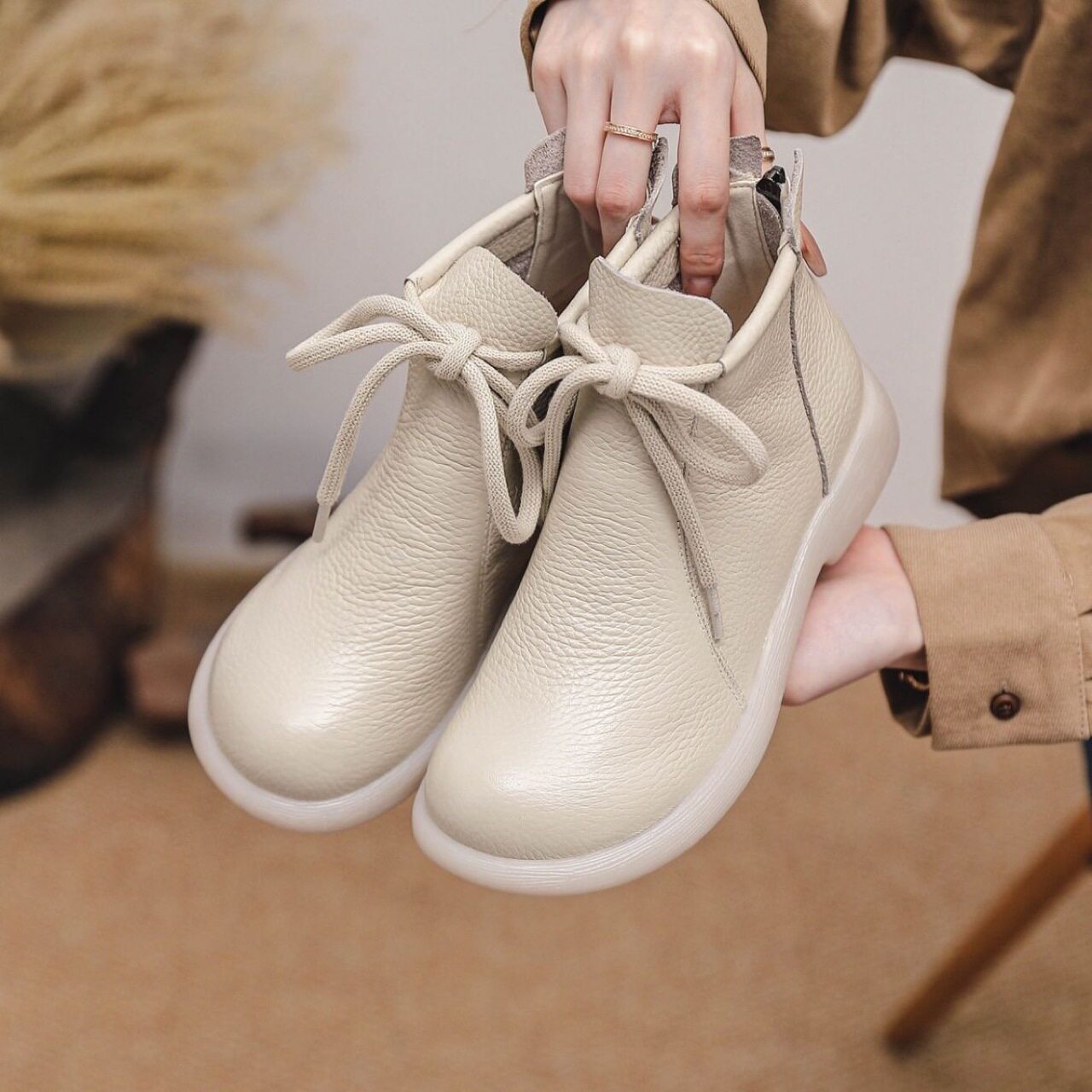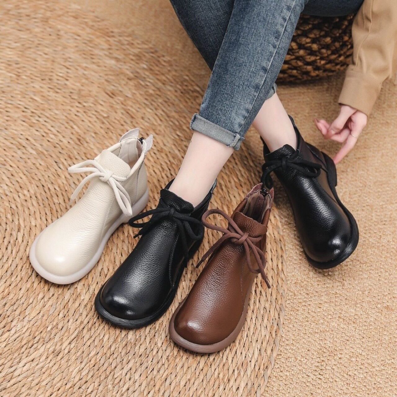2026新款马丁靴头层牛皮软底妈妈鞋系带真皮女鞋超软单鞋深口短靴