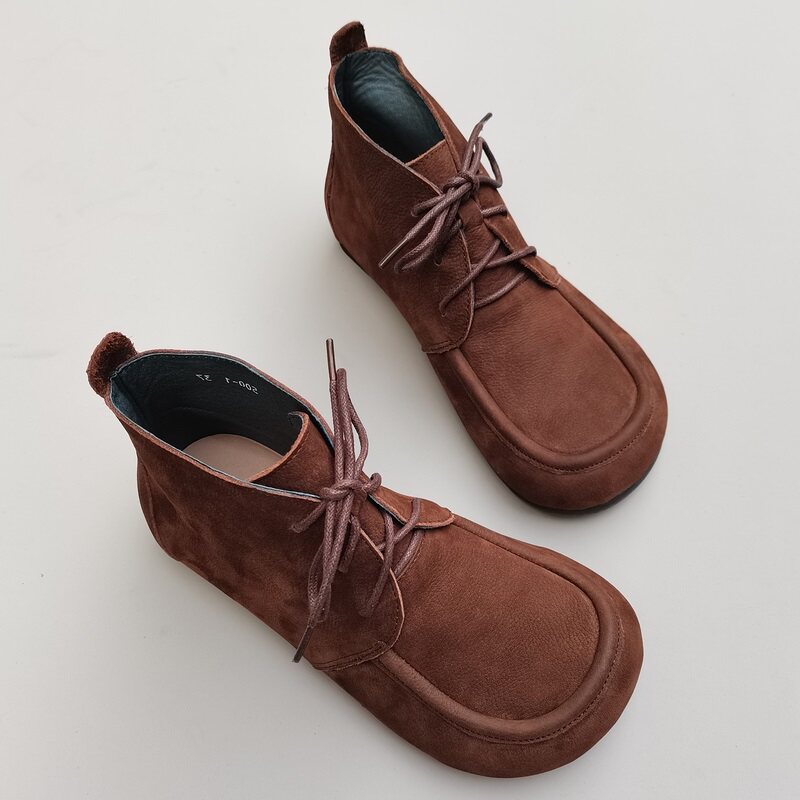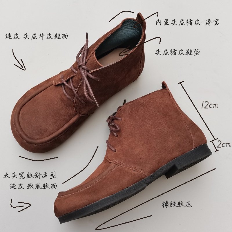 真皮工装短靴女外贸芒果宽胖大头娃娃高帮头层牛皮原单鞋防滑秋季