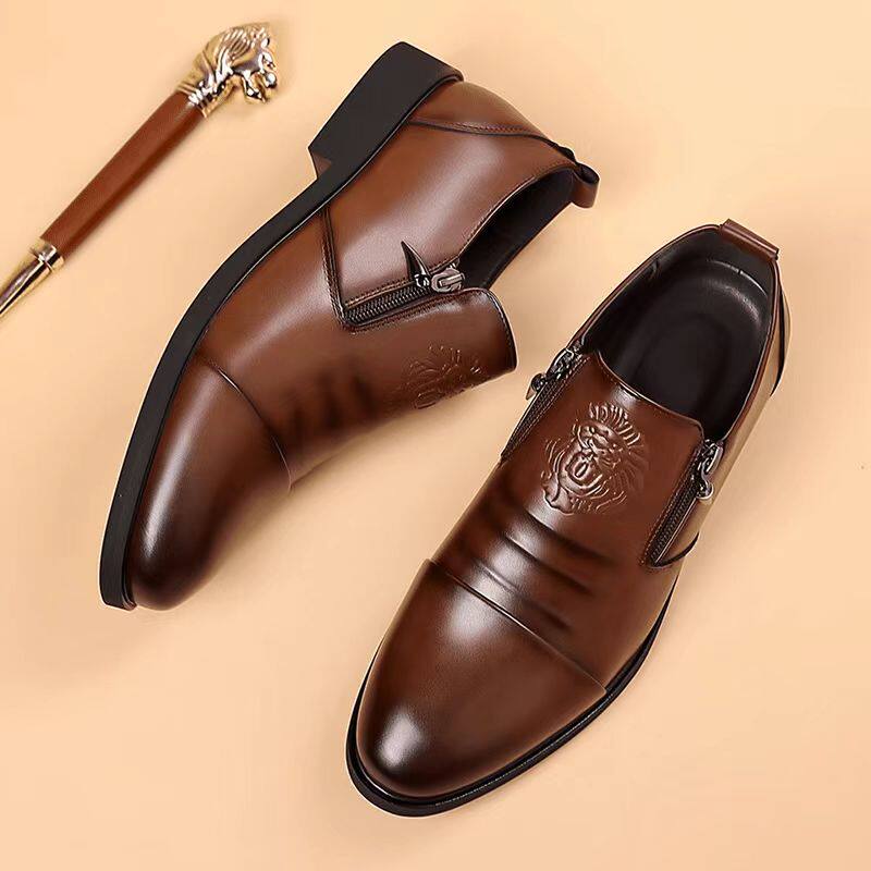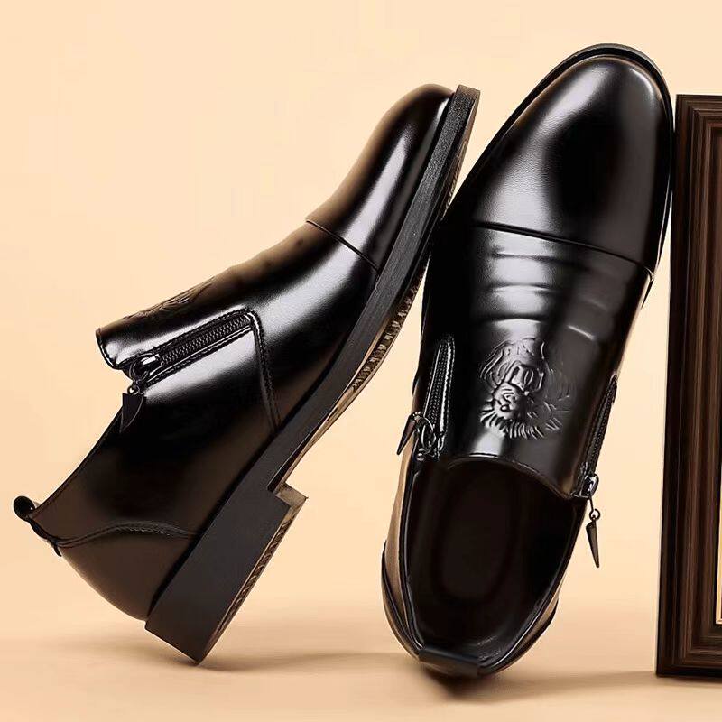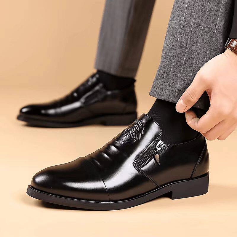 皮鞋男2026春季新款真皮透气正装商务休闲鞋一脚蹬尖头西装德比鞋