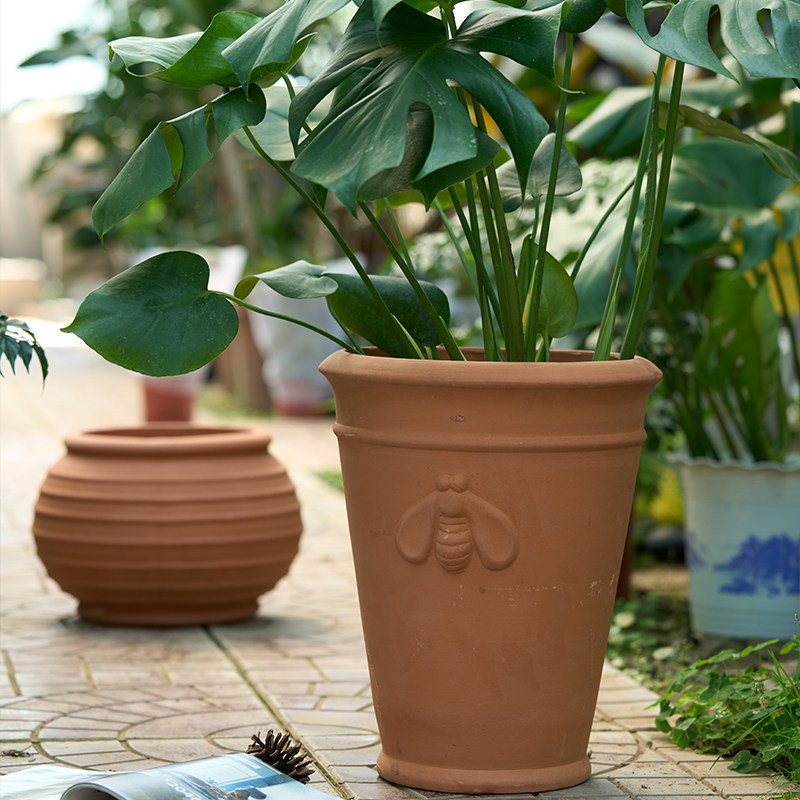 大口径花盆红陶矮胖宽口透气透水绿植种树盆栽庭院园艺花园室外盆