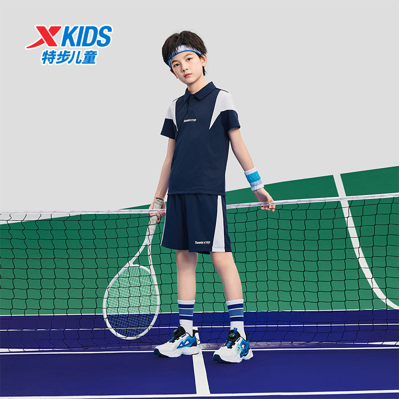 特步童装男童夏季新款拼色速干网球套装两件套中大童运动针织套装