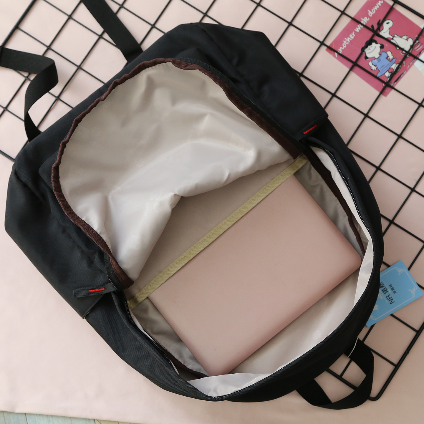 NR黑色简约百搭双肩包男书包初中女生轻便旅游登山包纯色双肩背包