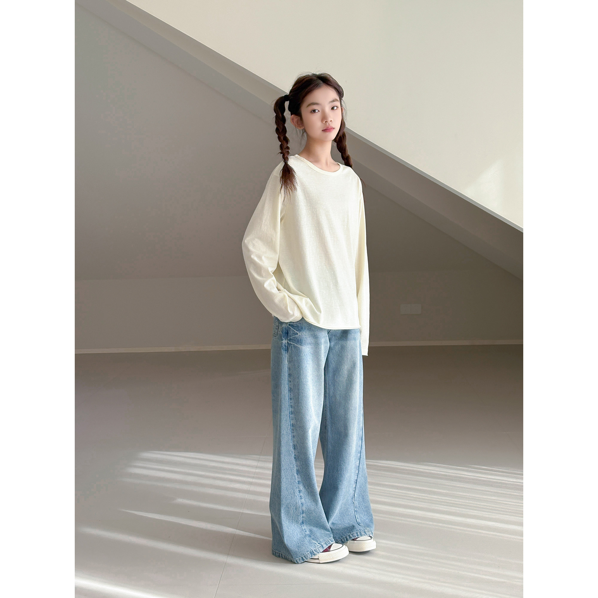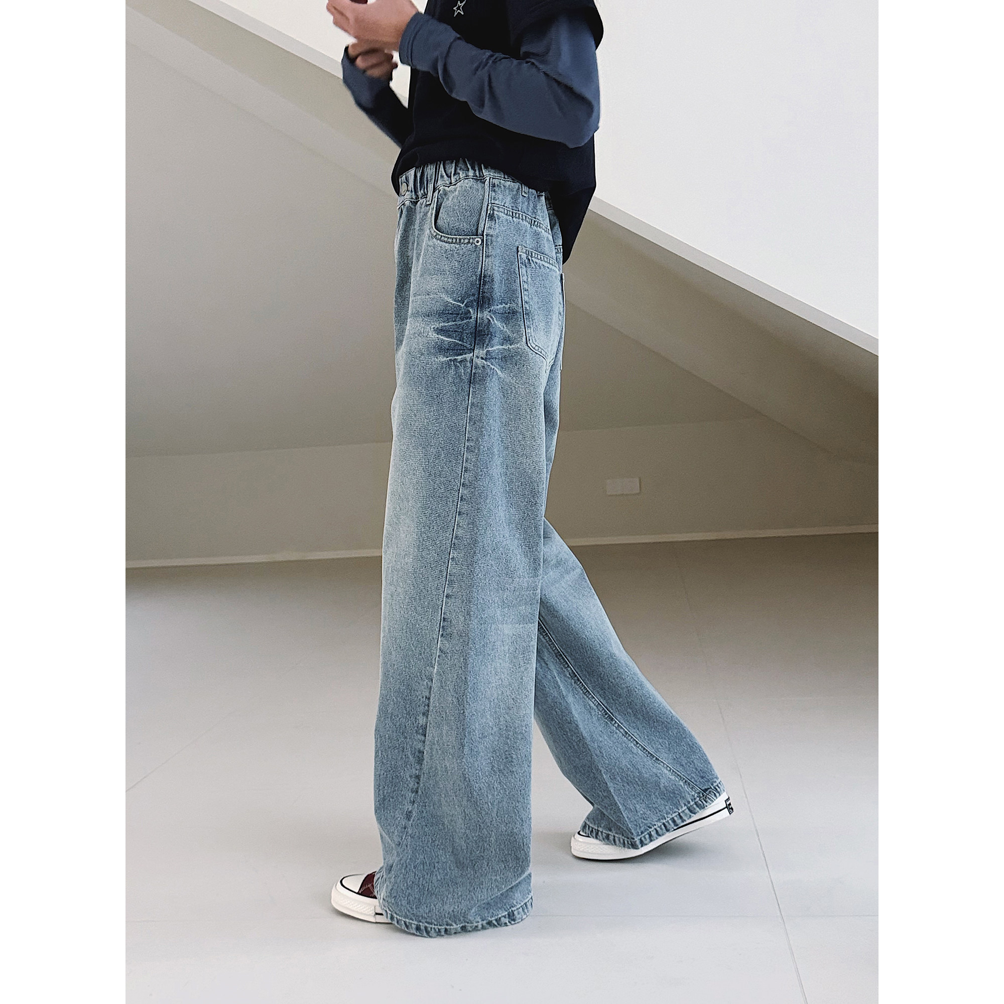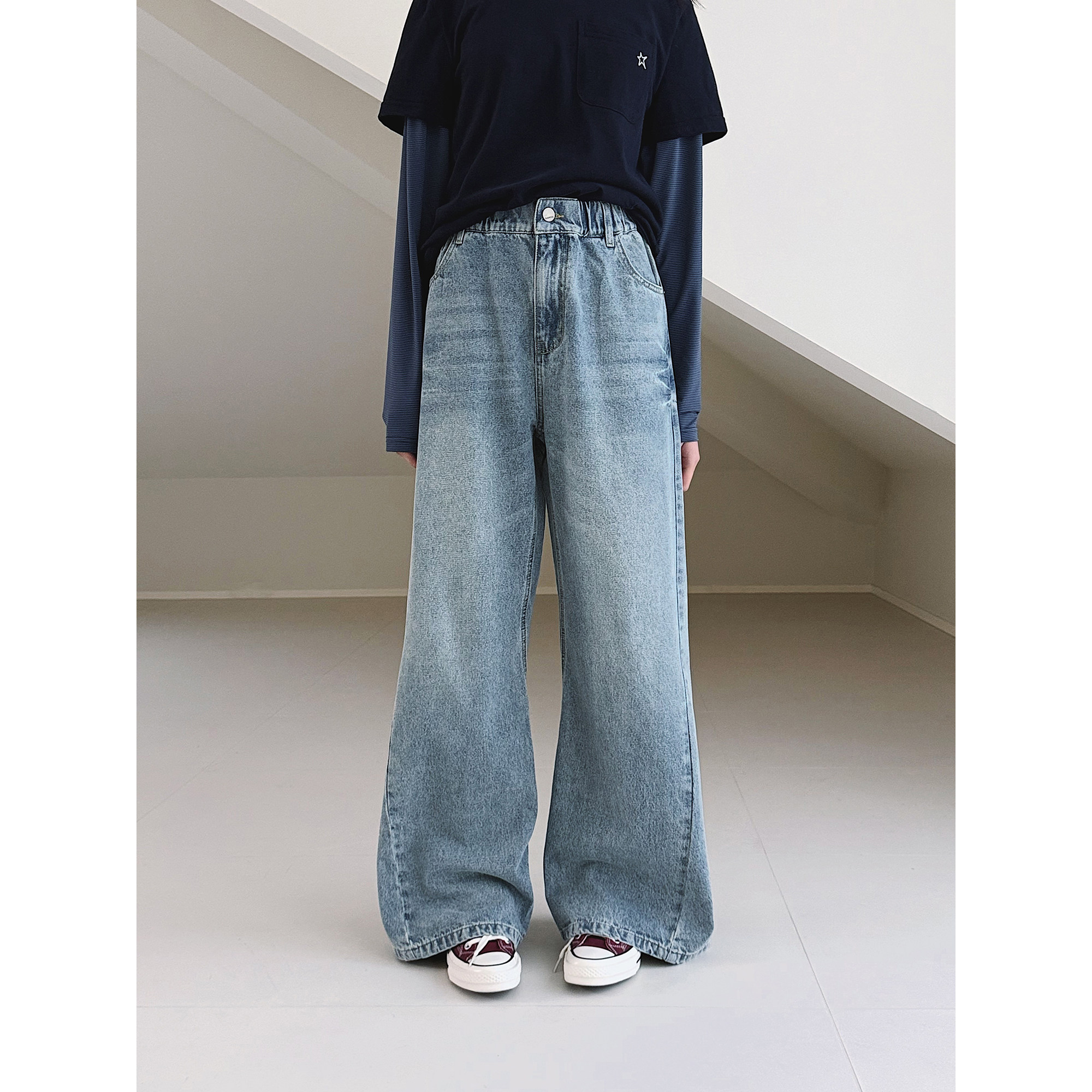 【天使】初中生女牛仔裤2026春装新款青少年宽松直筒微喇拖地裤子