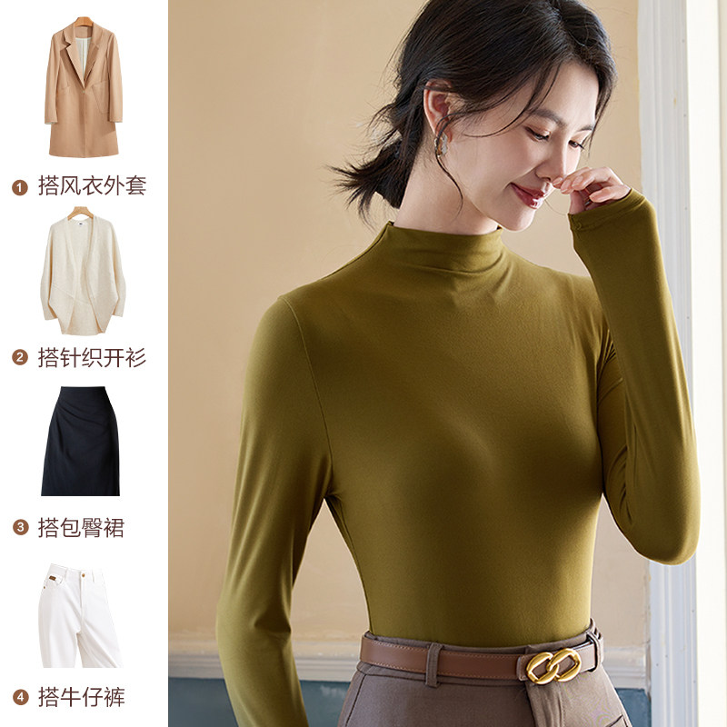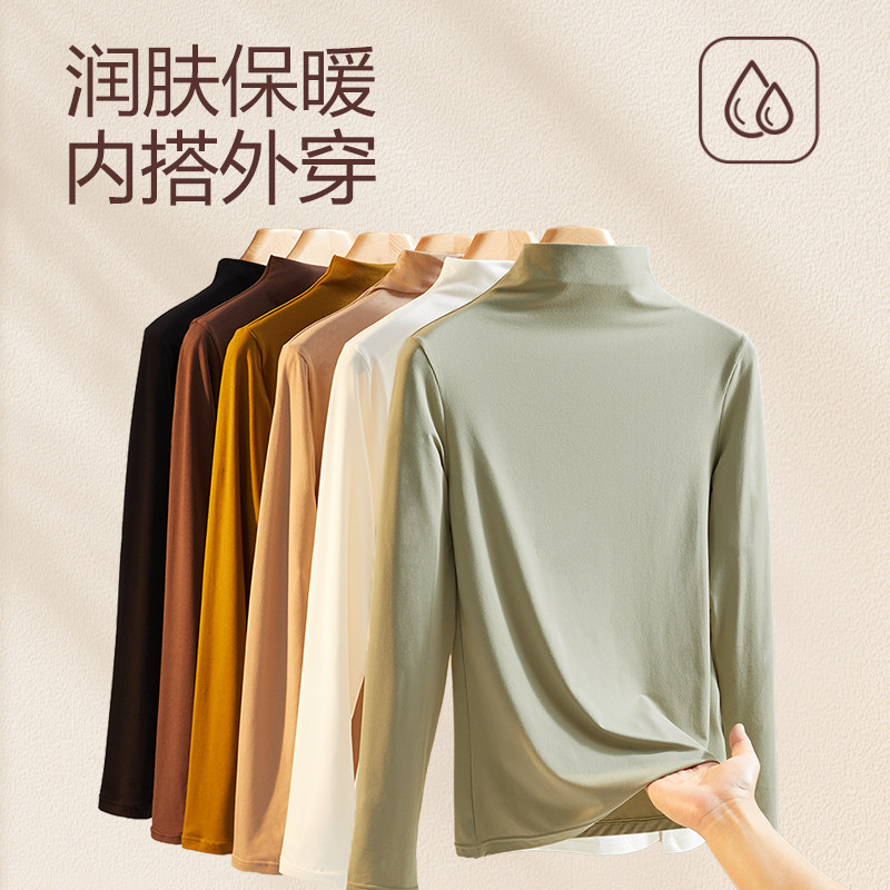 恒源祥无痕保暖上衣女款秋衣美体肤内搭外穿中领打底衫薄款百搭新