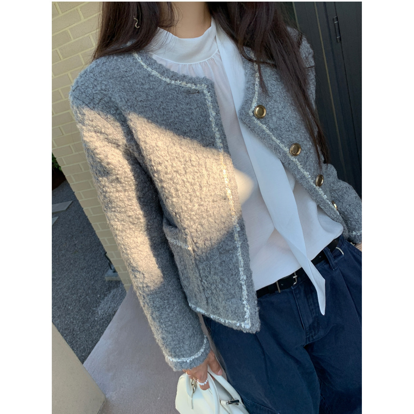 高级感小香风毛呢外套女秋冬短款加厚显瘦夹棉小个子新款呢子上衣