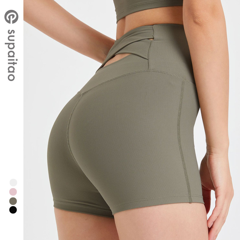 苏派淘美背交叉腰高腰提臀瑜伽裤短裤热裤辣妹健身裤螺纹运动裤女