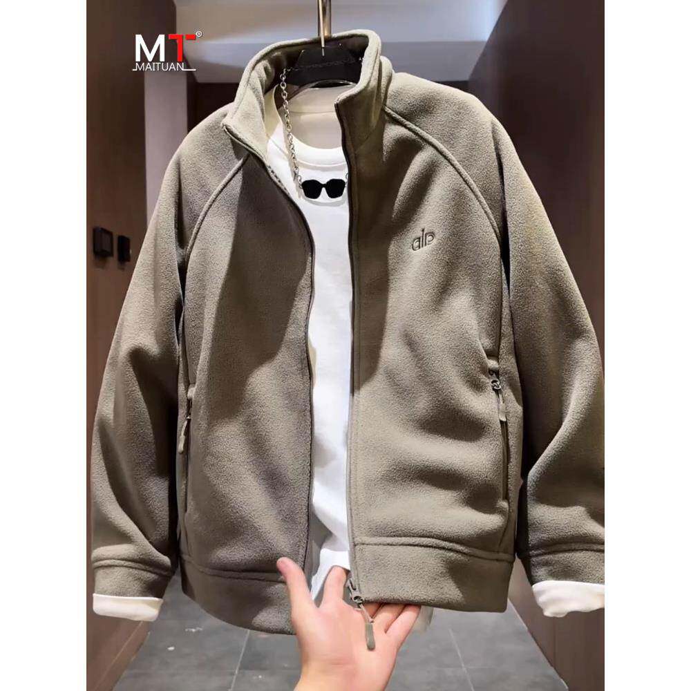 高端摇粒绒外套男士2025新款秋冬季加厚加绒保暖拉炼休闲夹克男款