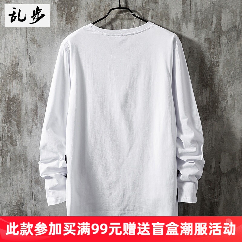 T恤男女纯棉春季潮流情侣长袖打底体恤纯色青少年宽松圆领上衣服