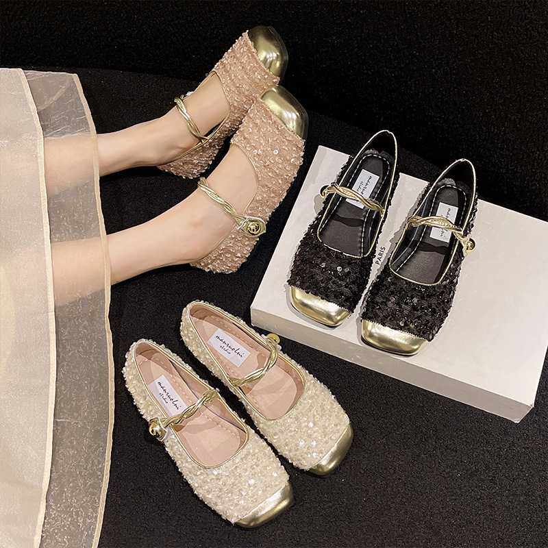 玛丽珍女鞋平底单鞋新款春季气质方头奶奶鞋小香风温柔晚晚鞋