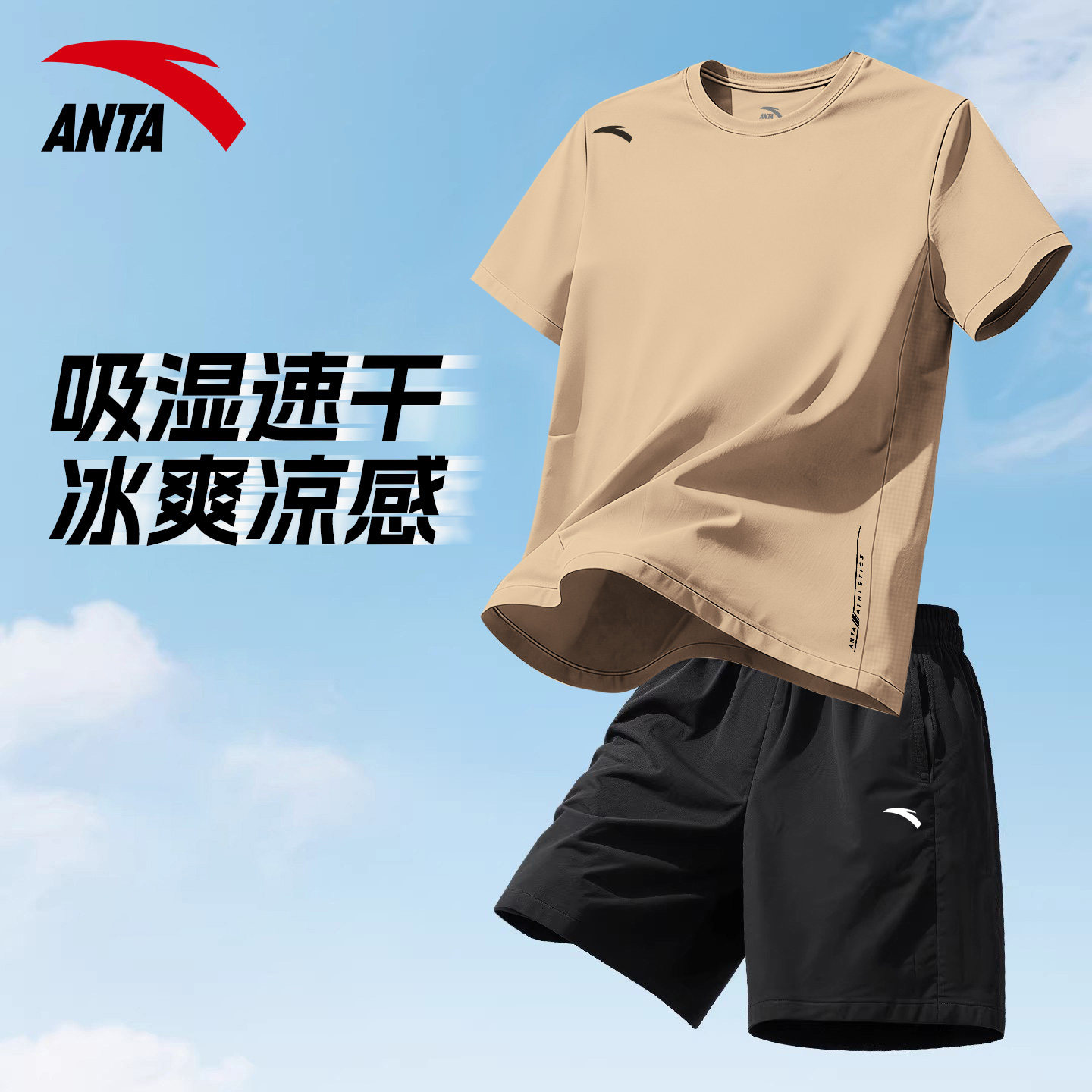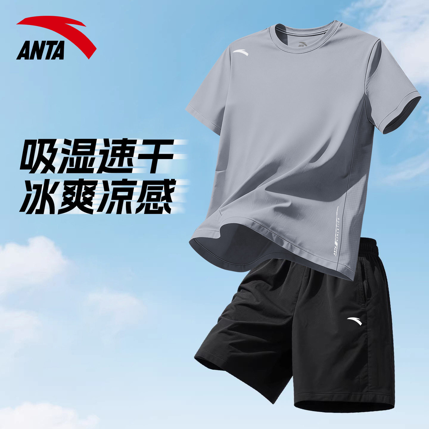 安踏跑步运动套装男青少年一套篮球训练服夏天男生健身速干衣短袖