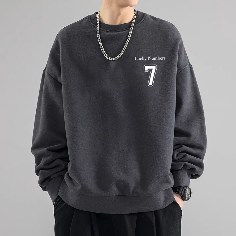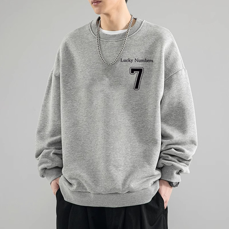 秋冬款圆领卫衣男生加绒加厚潮牌痞帅青少年初中高中学生宽松百搭