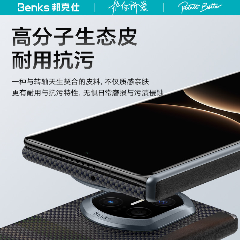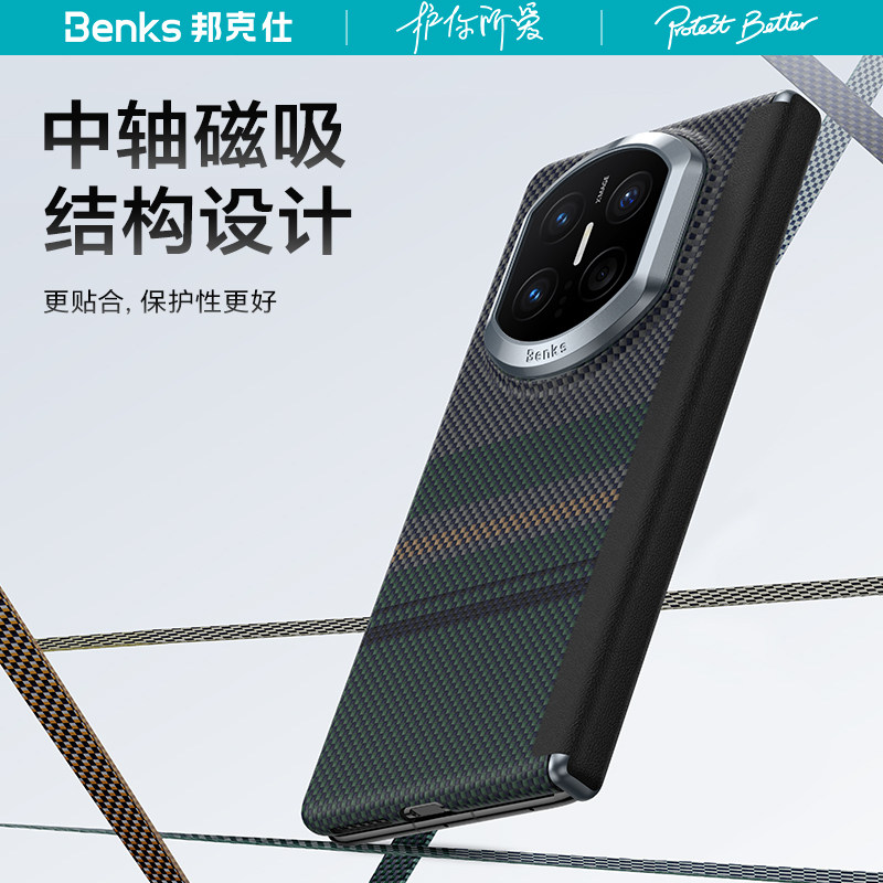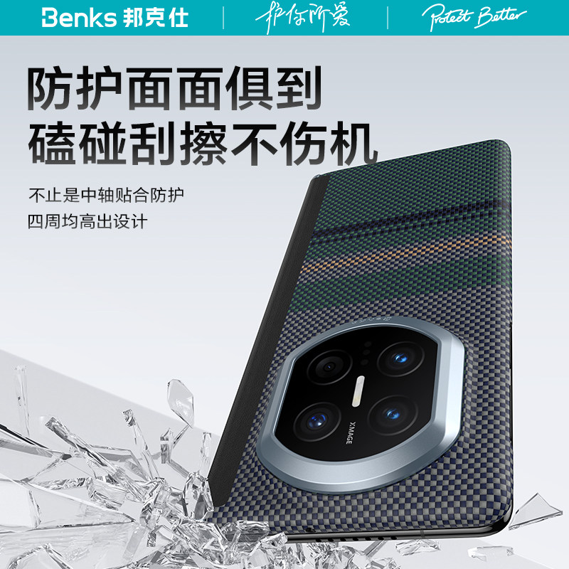 Benks适用华为Matex7凯芙拉手机壳中轴铰链磁吸保护壳X6新款极光超薄X5折叠典藏版凯夫拉碳纤维简约商务男士
