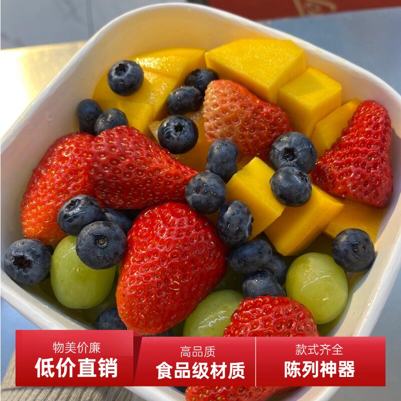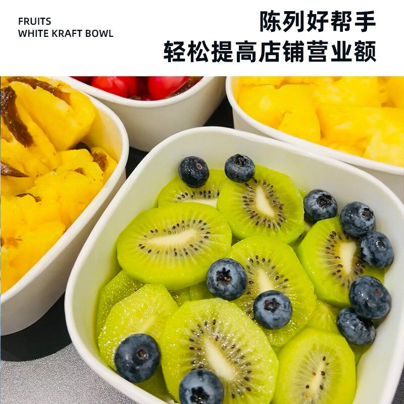 白色一次性加厚正方形水果切盒包装盒带盖牛皮纸环保可降解打包盒