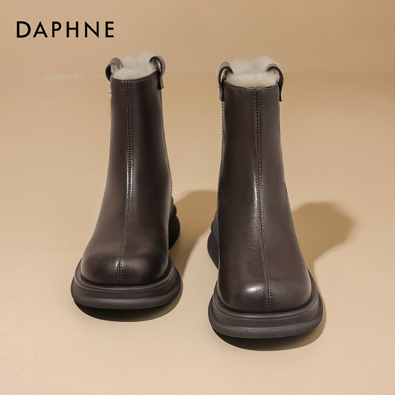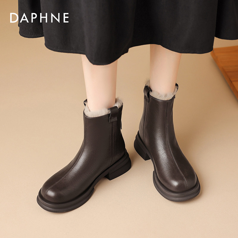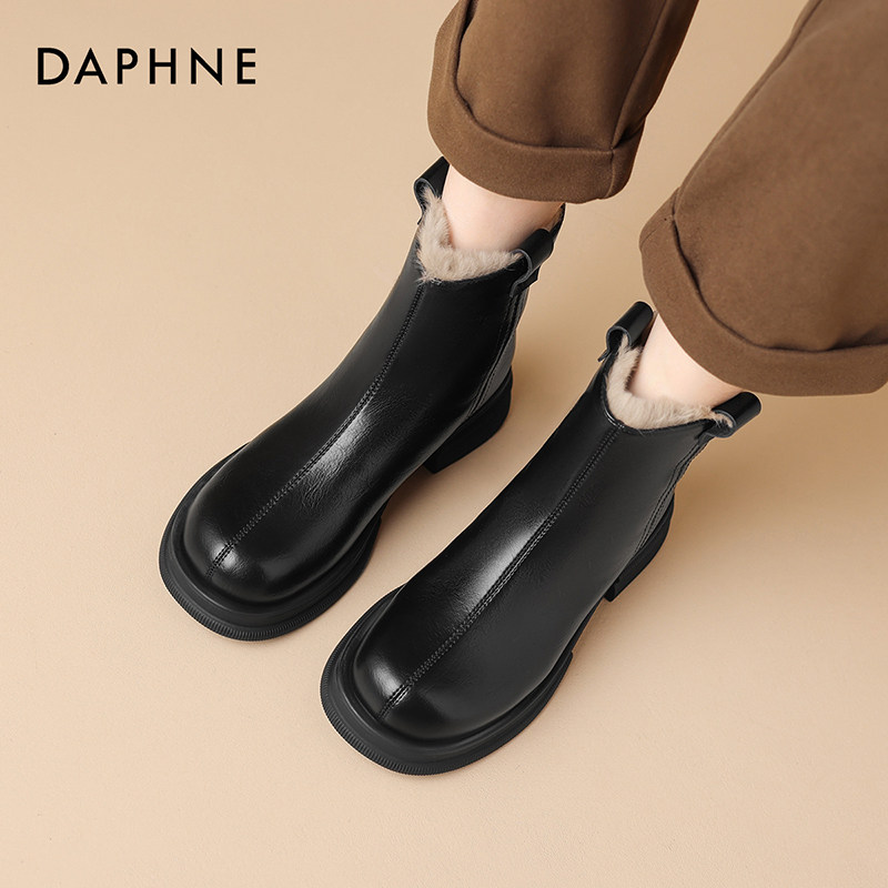 达芙妮马丁靴女款2025新款冬季雪地靴加绒加厚棉鞋真皮切尔西短靴