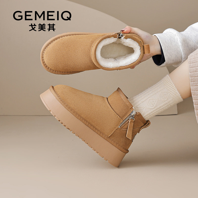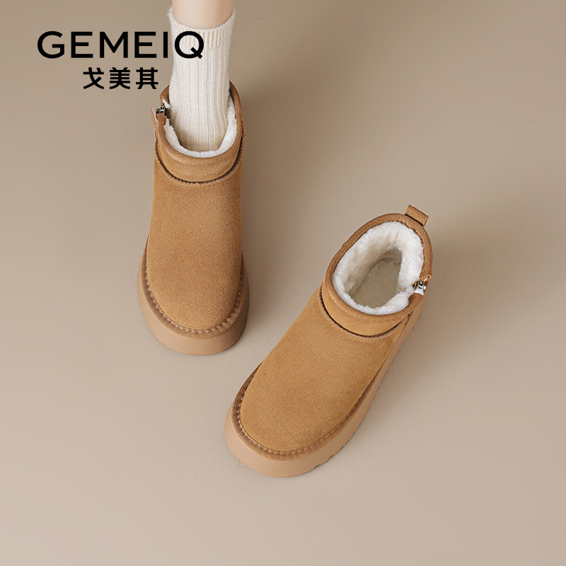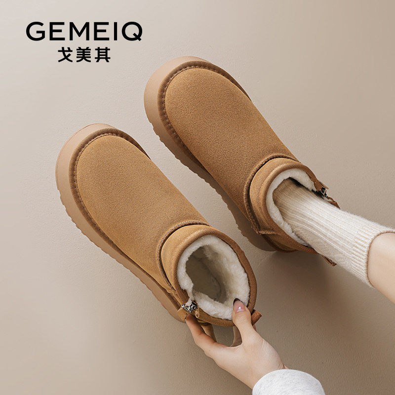 戈美其真皮雪地靴女款2024新款冬季爆款厚底短靴加绒加厚保暖棉鞋