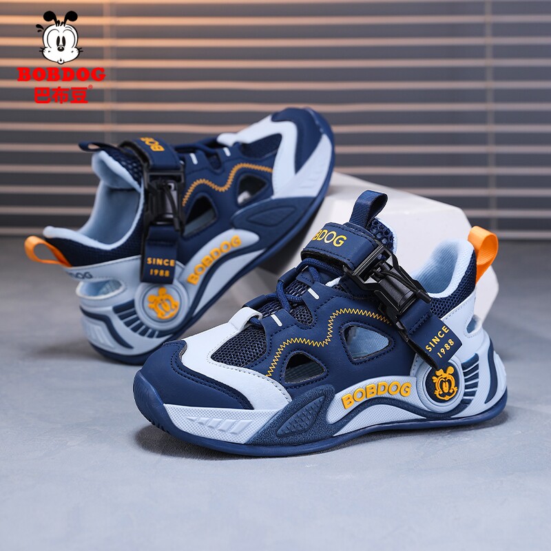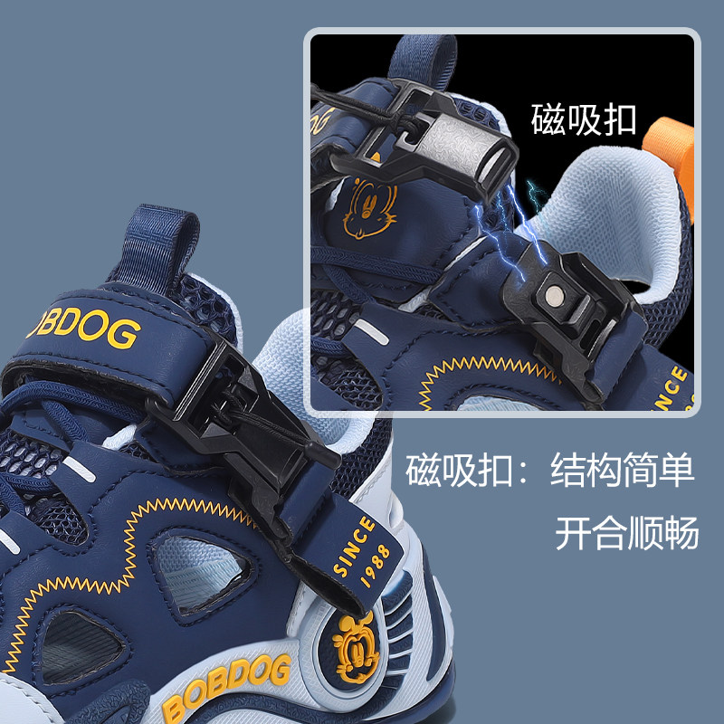 巴布豆男童鞋子夏季透气单网框子鞋新款磁吸扣运动鞋女童休闲跑鞋