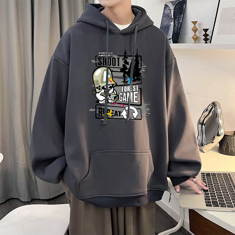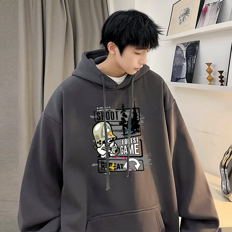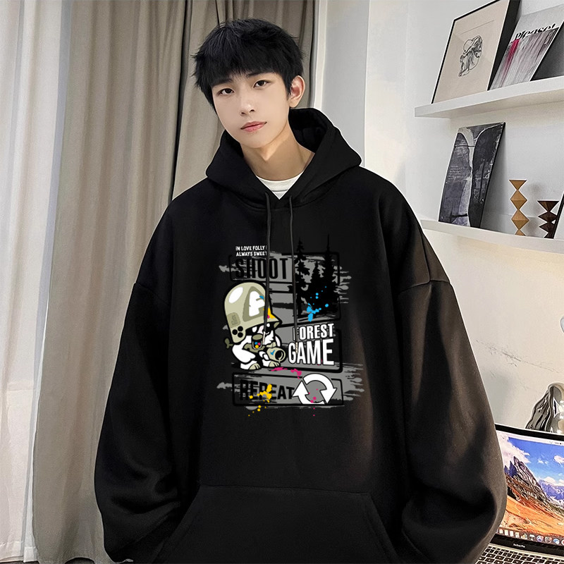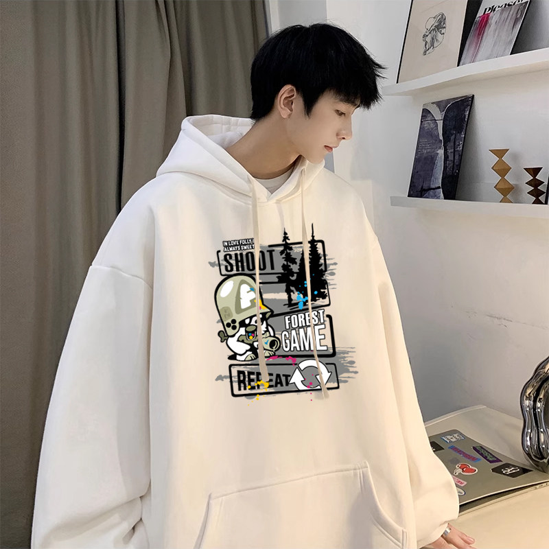 秋天男生白色卫衣外套男款连帽衫潮流初中学生套头衫青少年春秋款