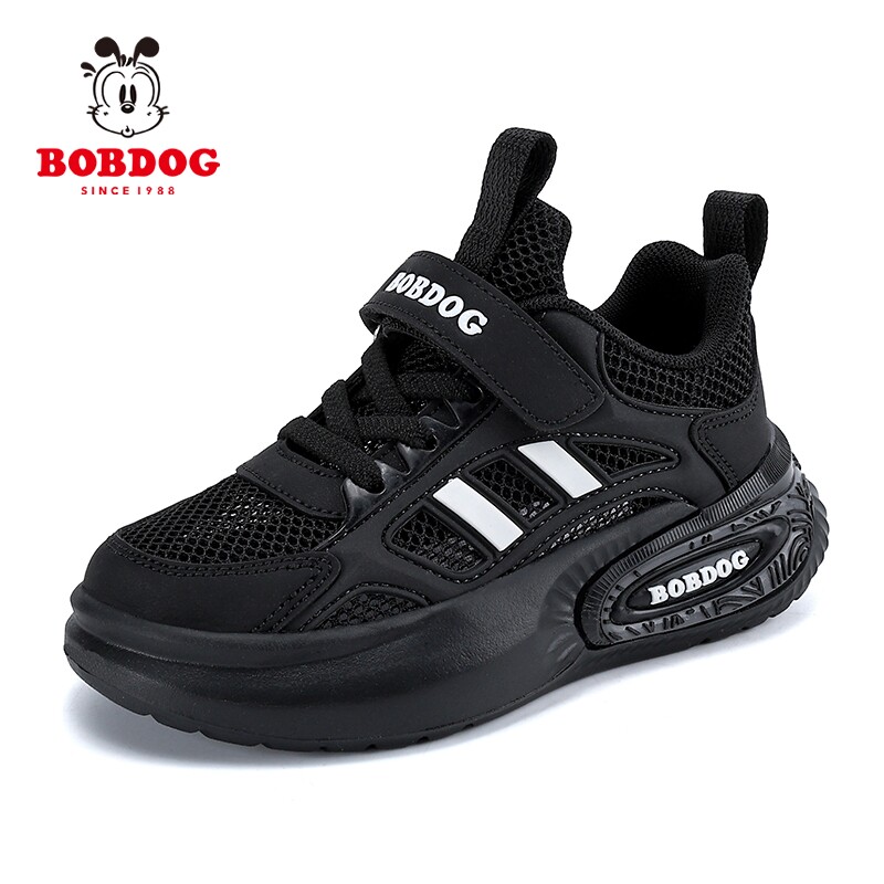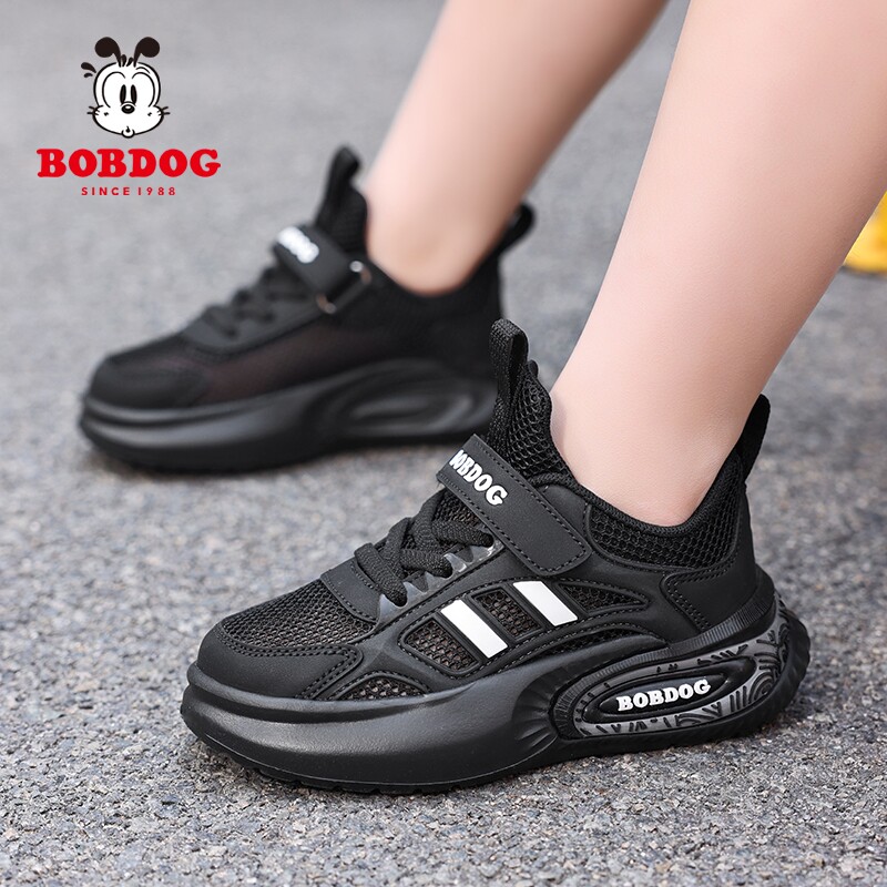 巴布豆男童黑色运动鞋春夏2026新款儿童鞋子女童网面鞋透气小黑鞋