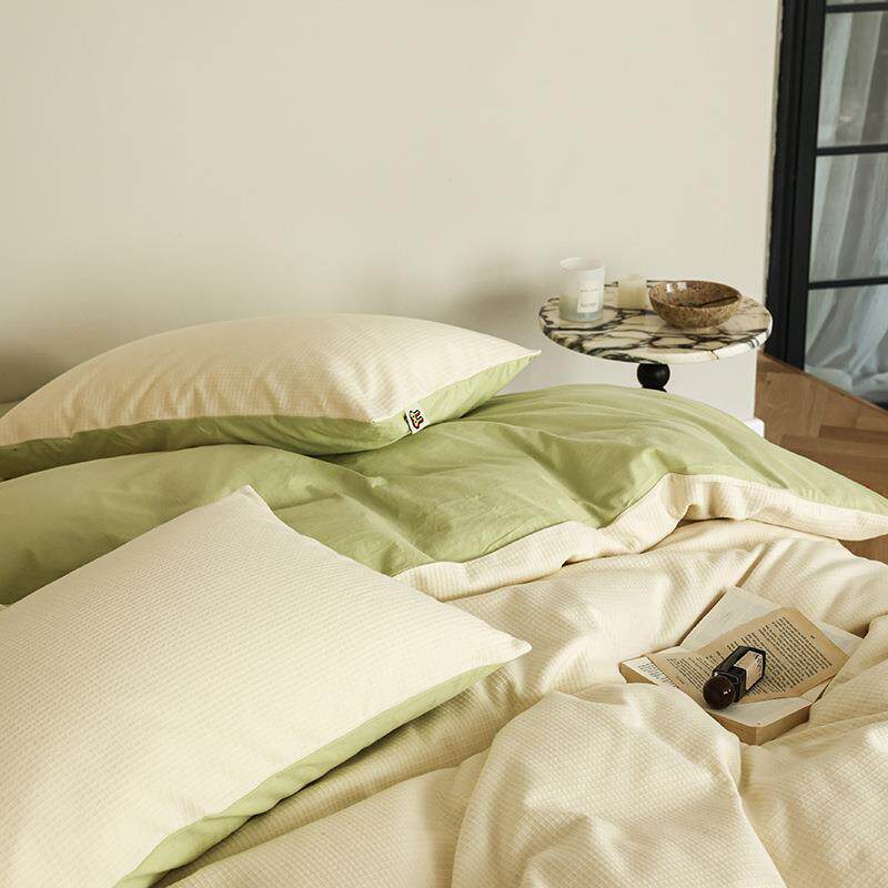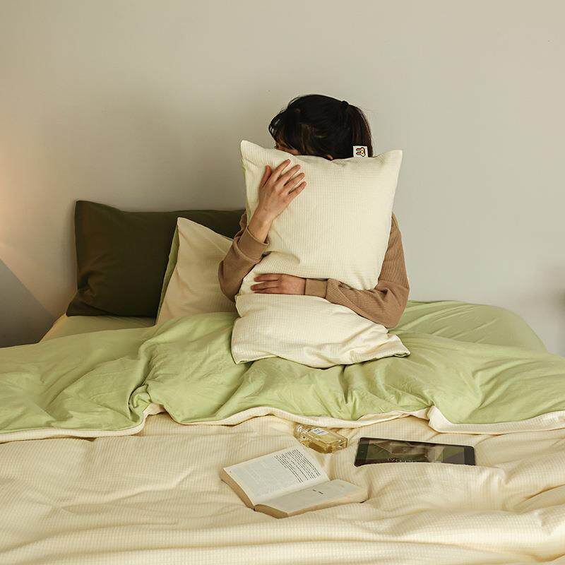 四季通用A类母婴级针织棉全棉四件套新款华夫格纯棉裸睡床单被套