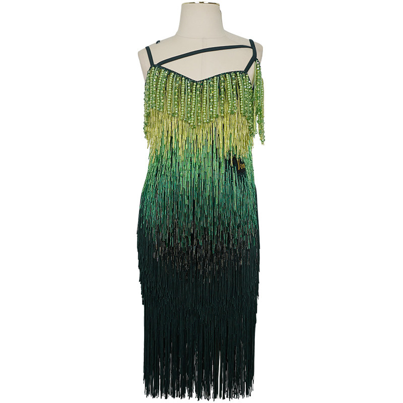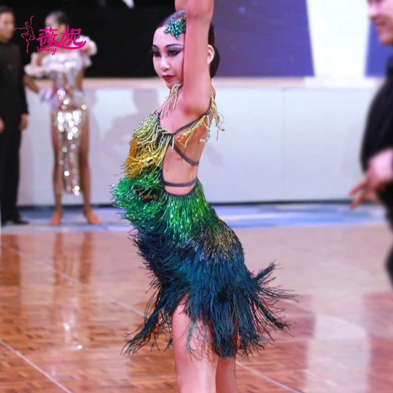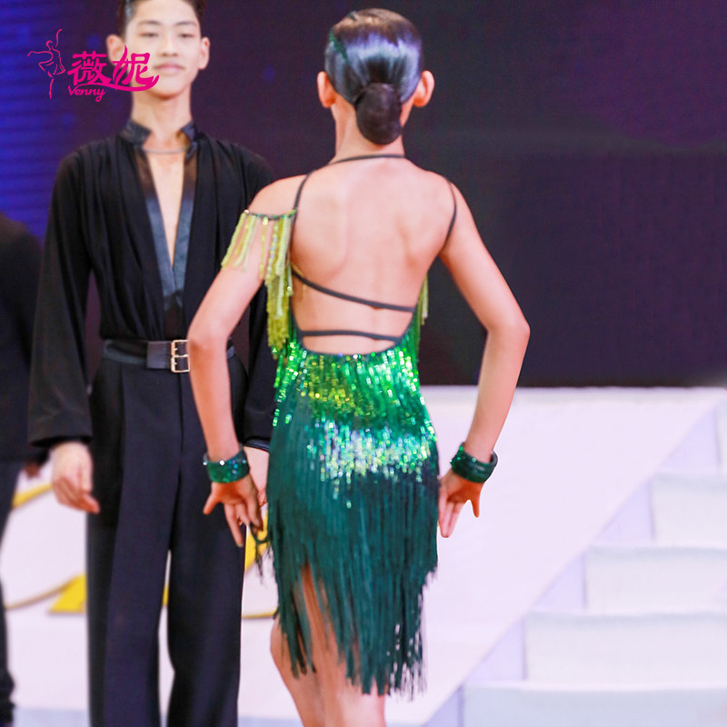 venny薇妮拉丁舞比赛服女童夏季新款花服女儿童表演连体流苏舞裙