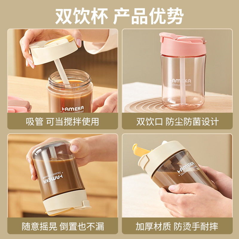 311线报网描述:耐热健康材质 双饮杯口 吸管+直饮 密封防漏