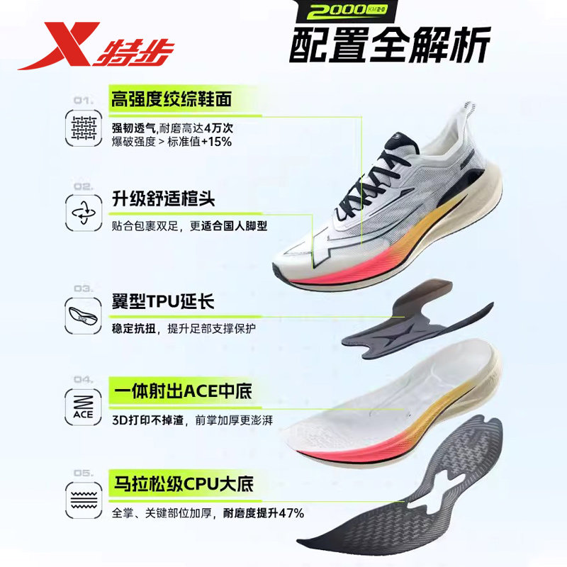 特步两千公里二代跑步鞋男鞋马拉松减震体测训练鞋中考竞速跑鞋