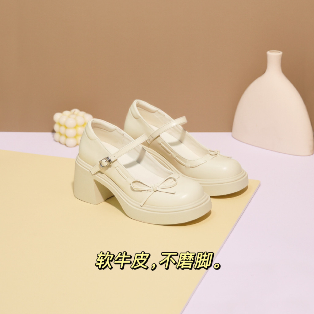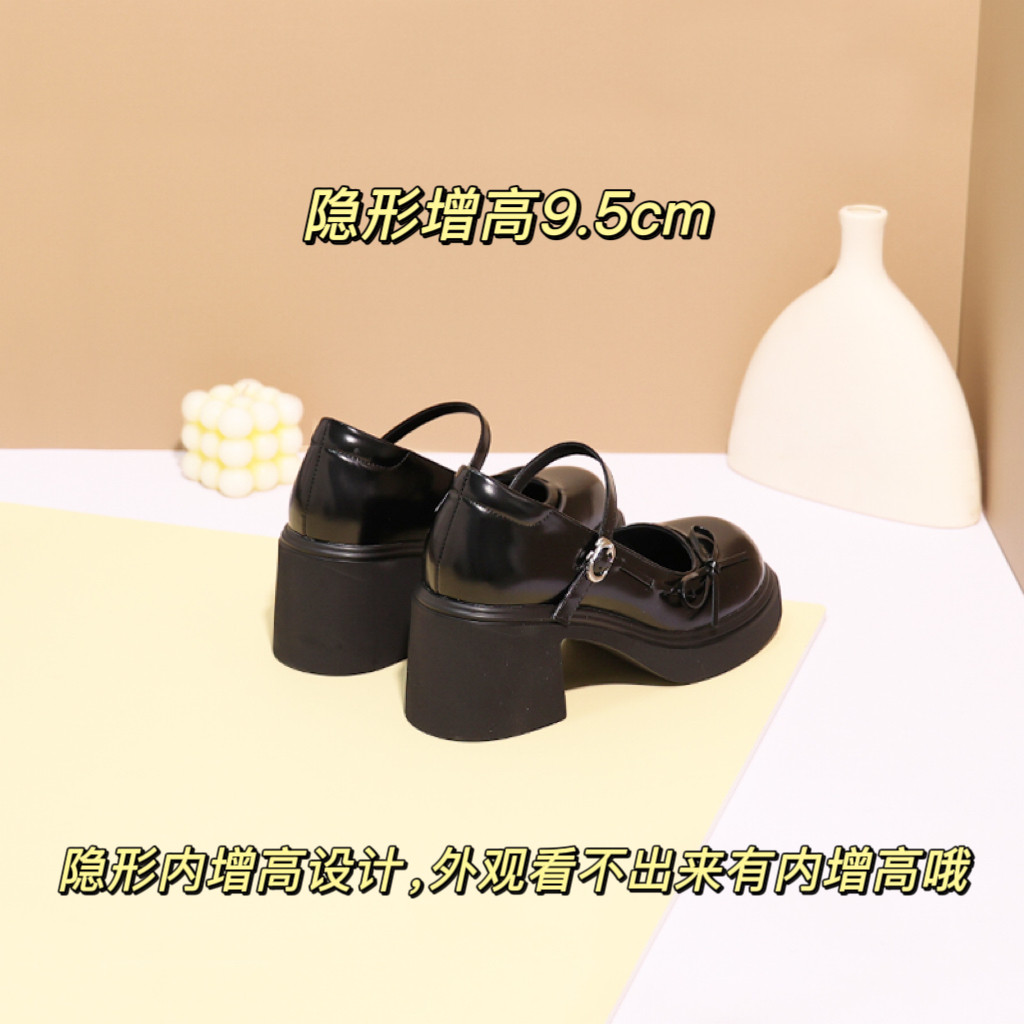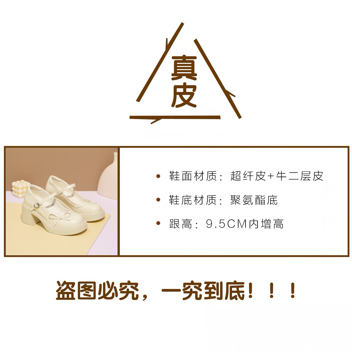 厚底白色玛丽珍鞋一字带高跟小皮鞋婚鞋粗跟包头凉鞋内增高单鞋