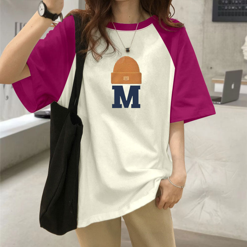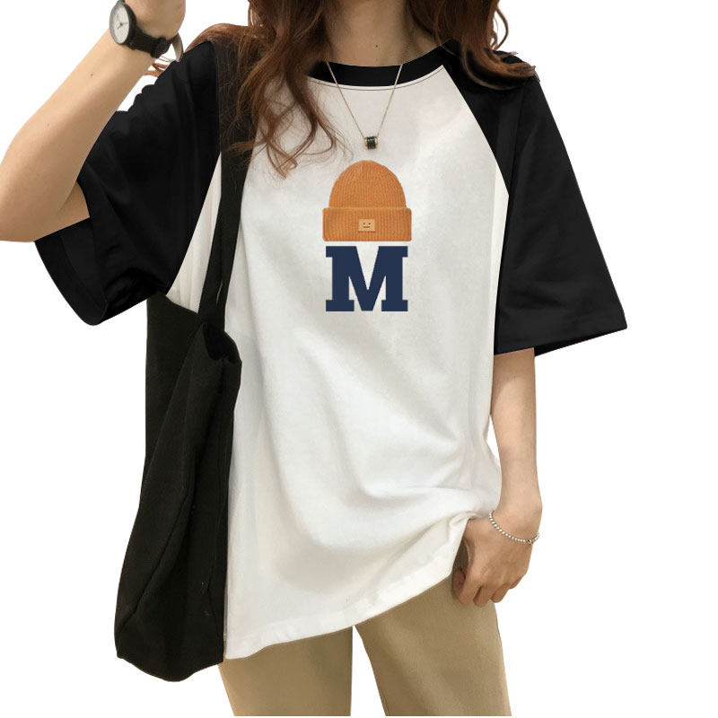 港风小众撞色设计短袖t恤女2026新款夏欧货大版帽子字母百搭上衣